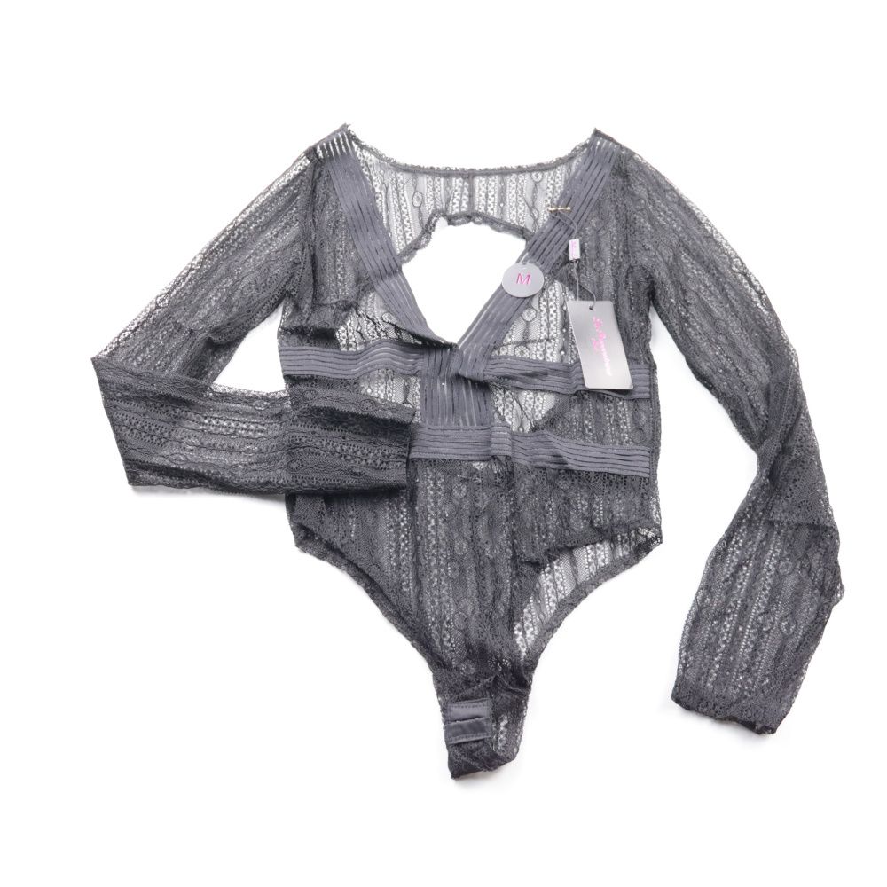 Кружевное боди Les P'tites Folies с длинными рукавами и декоративными лентами на лифе. Подойдёт для вечернего образа или как акцентный слой под жакет/кардиган. Лёгкое и занимает минимум места в гардеробе и поездках.
