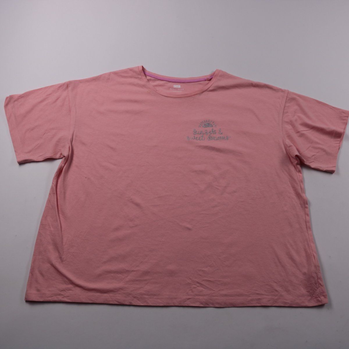 Домашняя футболка F&F Nightwear нежно-розового цвета с небольшим принтом на груди и круглым вырезом. Подойдёт для сна и отдыха дома, хорошо сочетается с шортами или пижамными брюками. Мягкий хлопковый трикотаж приятен к телу и прост в уходе.