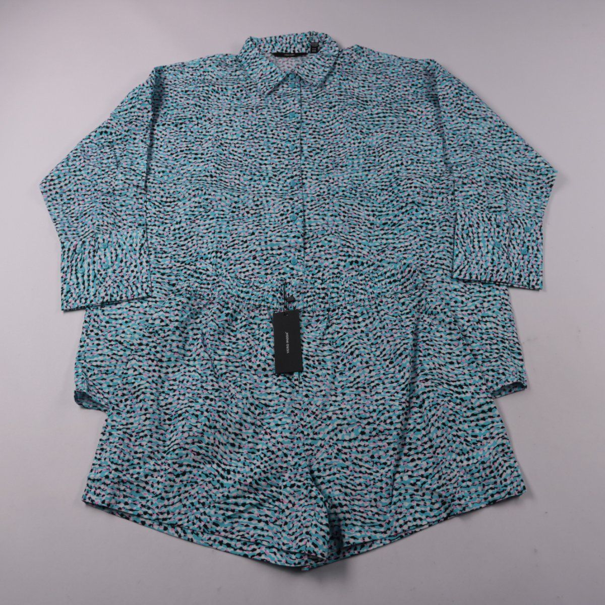 Женская пижама Vero Moda: комплект из рубашки на пуговицах с длинным рукавом и шорт. Голубая ткань с мелким контрастным принтом подойдёт для сна и домашнего отдыха. Хлопок хорошо дышит и комфортен к телу.
