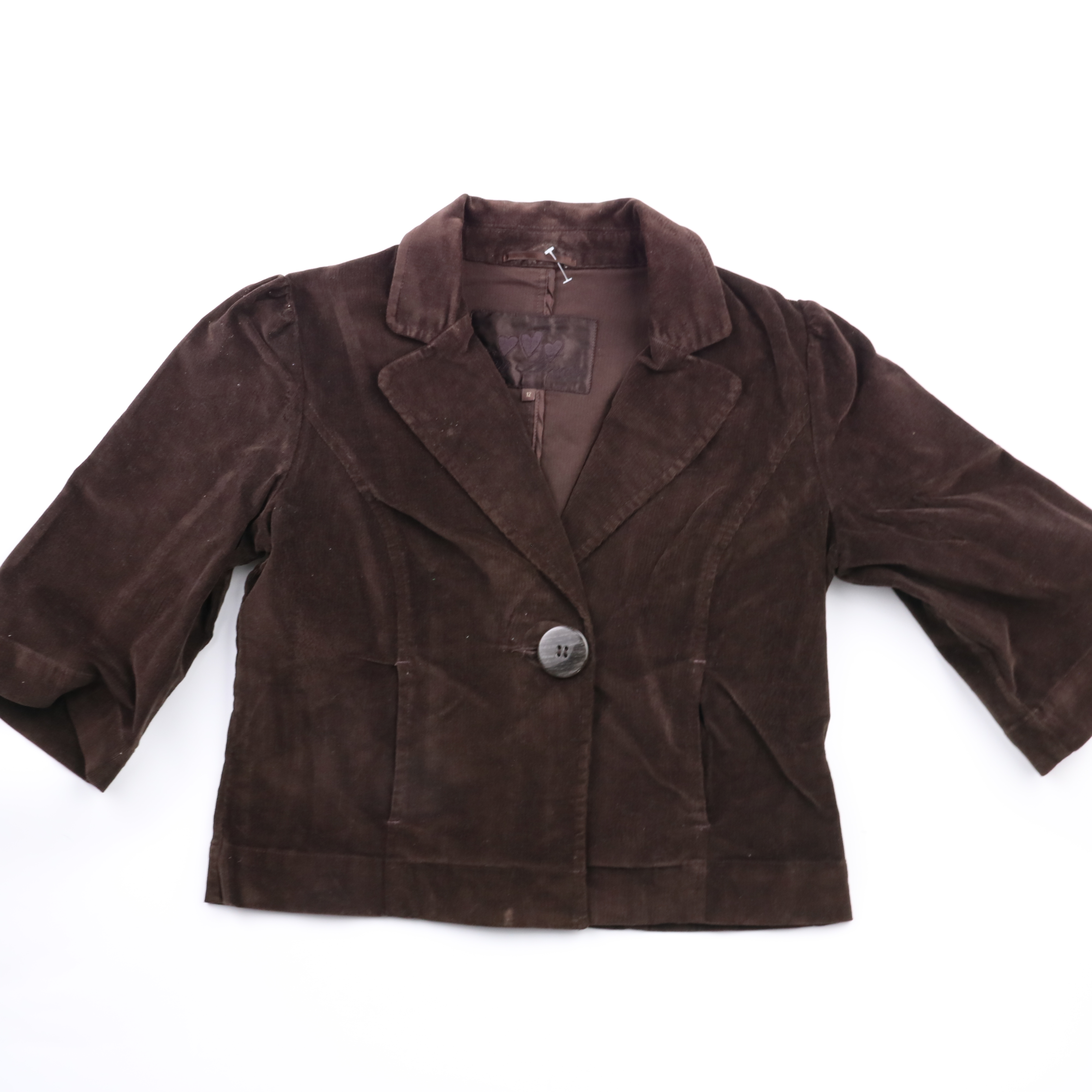 Женский пиджак Marks & Spencer из плотного хлопка с добавлением эластана, коричневого цвета, с классическими лацканами и одной крупной пуговицей. Подойдёт для офиса и повседневных образов в прохладную погоду, хорошо сочетается с джинсами и юбками. Мате...