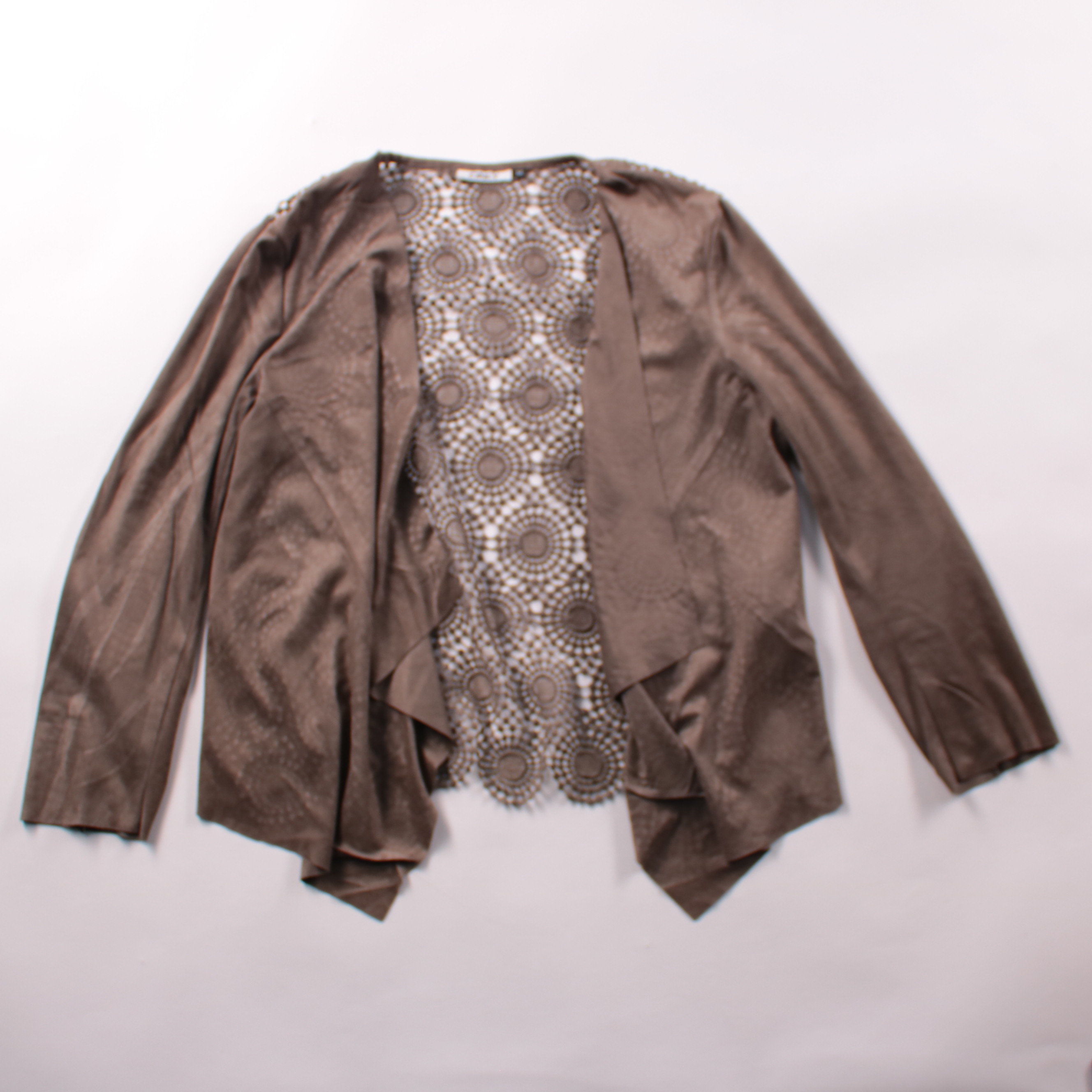 Жакет Only из полиэстера с драпировкой спереди и ажурной вставкой на спинке. Подойдёт для офиса и повседневных образов в демисезон с топом или блузой. Лёгкий материал почти не мнётся и быстро сохнет.