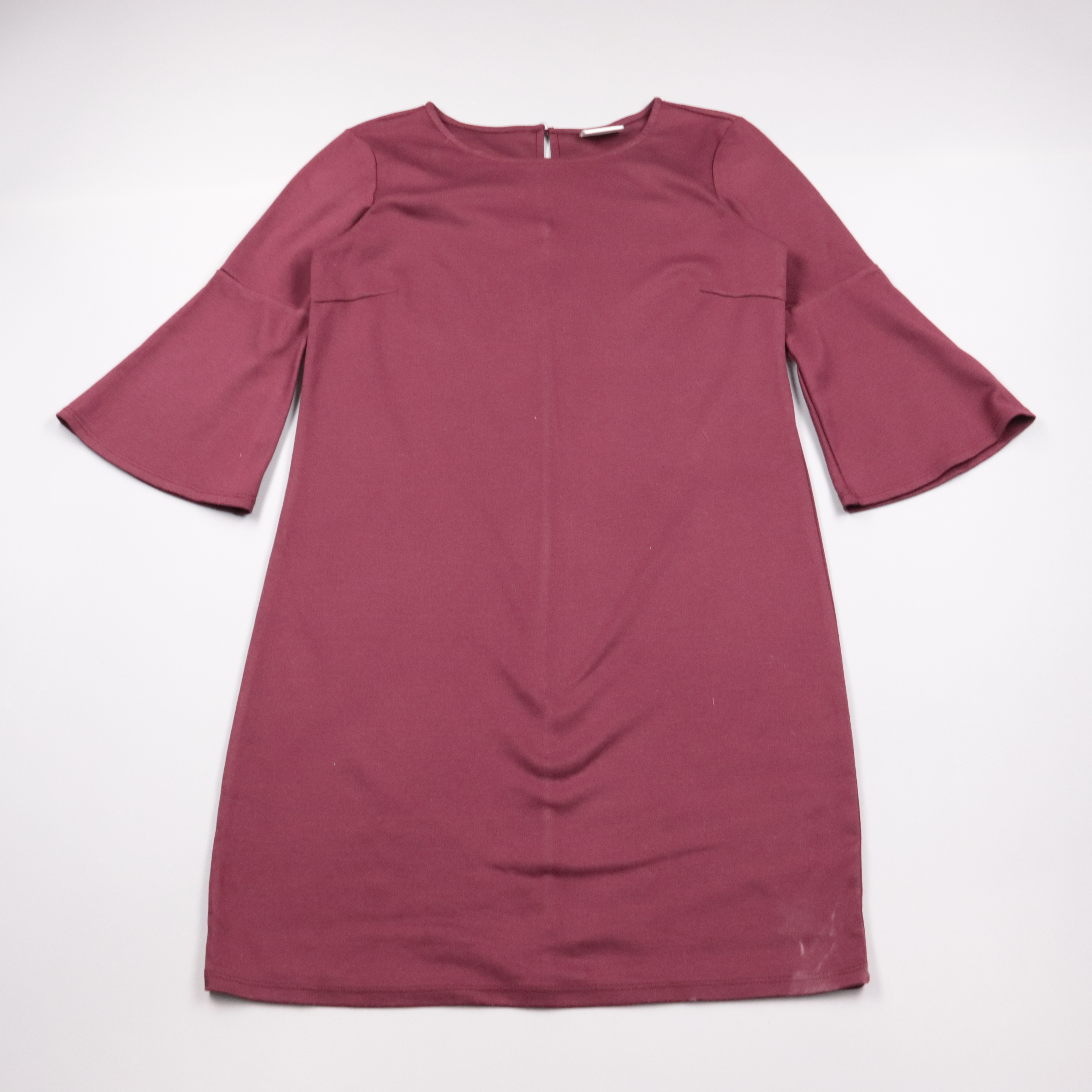 Повседневное платье Vila бордового цвета с расклешёнными рукавами и застёжкой на спинке. Подойдёт для офиса и на каждый день, легко сочетается с ботильонами или кедами. Практичный плюс — плотный трикотаж почти не мнётся и комфортно сидит.