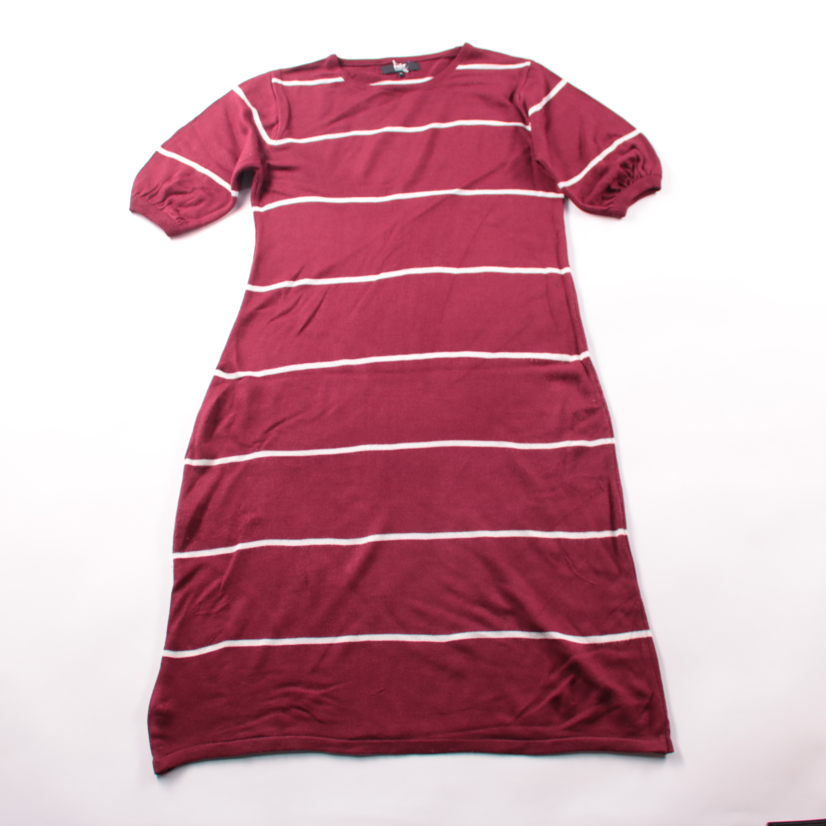 Повседневное платье Her by INVICTUS бордового цвета в белую горизонтальную полоску, прямого кроя с рукавом 3/4. Подойдёт для офиса и прогулок в прохладную погоду, легко сочетается с кедами или ботильонами. Акриловый трикотаж практичен в носке и быстро ...