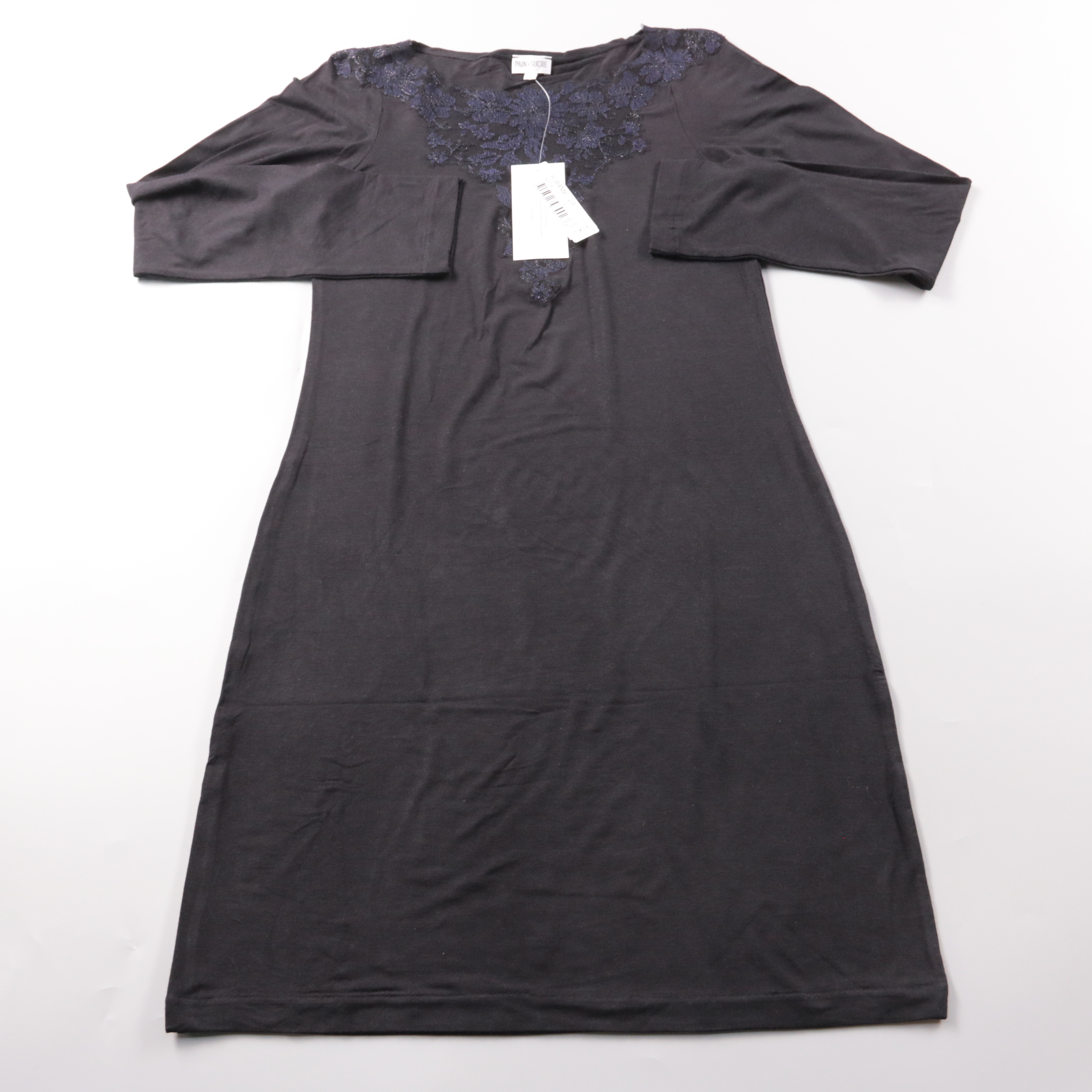 Повседневное платье Pain de Sucre прямого силуэта с рукавом 3/4 и кружевной отделкой у выреза. Подойдёт для офиса и спокойных выходов, легко сочетается с жакетом и лодочками. Вискоза с добавлением эластана тянется и комфортно садится по фигуре.