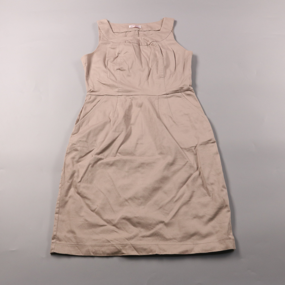 Бежевое повседневное платье Orsay без рукавов, приталенного кроя с аккуратными вытачками и карманами. Подойдёт для офиса и прогулок в тёплую погоду, хорошо сочетается с жакетом или кардиганом. Хлопковая ткань с добавлением эластана слегка тянется и ком...
