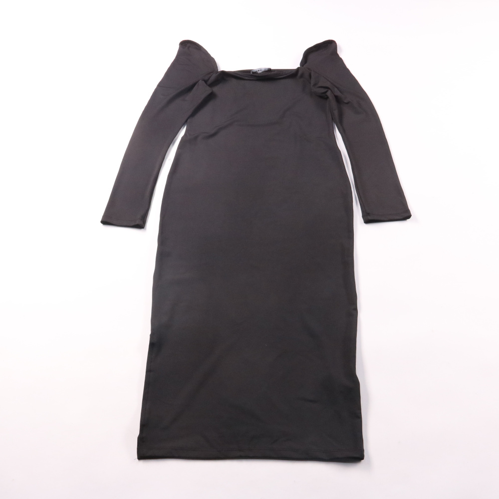 Черное облегающее платье Trendyol длины миди с длинными рукавами и акцентом на плечах. Подойдет для вечерних выходов и повседневных образов в прохладную погоду, хорошо сочетается с жакетом или пальто. Эластичная ткань комфортно садится по фигуре и не с...