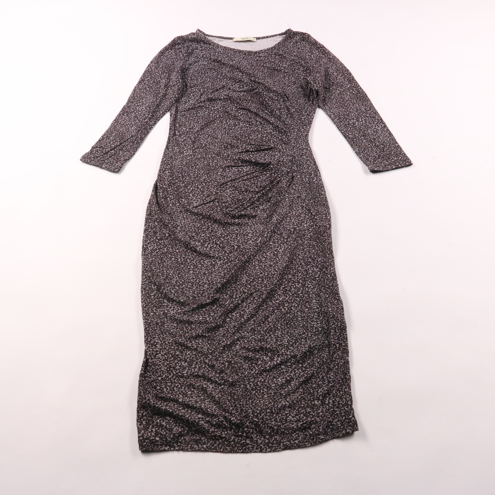 Повседневное платье Oasis облегающего силуэта с рукавом 3/4 и мягкими драпировками спереди. Подойдёт для офиса и на каждый день, хорошо сочетается с жакетом или кардиганом. Эластичная вискоза тянется и комфортно садится по фигуре.