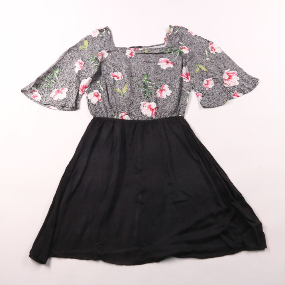 Повседневное платье Tezenis с квадратным вырезом, короткими рукавами и цветочным верхом на чёрном фоне. Подойдёт для лета, прогулок и отпускных образов, легко сочетается с сандалиями или кедами. Лёгкая вискоза хорошо дышит и комфортна в жару.