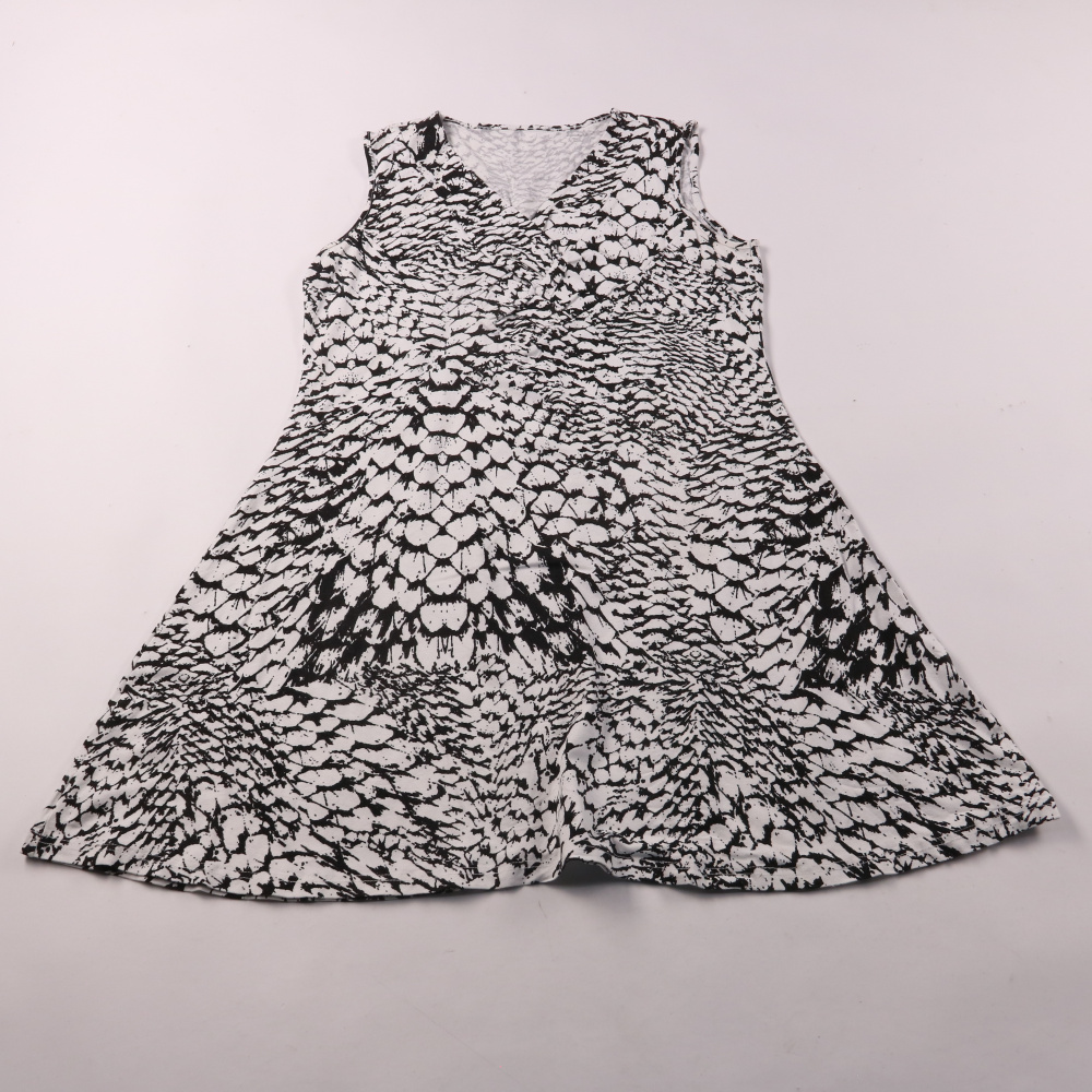 Летнее платье без рукавов с V-образным вырезом и черно-белым принтом под кожу/чешую. Подойдёт для повседневной носки и прогулок, легко сочетается с кедами или босоножками. Тянущаяся ткань комфортно садится по фигуре и не сковывает движения.