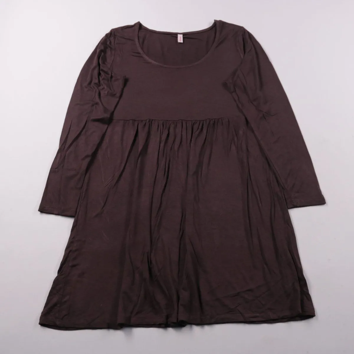 Повседневное платье Sheego шоколадно-коричневого цвета с длинным рукавом, круглым вырезом и завышенной линией талии со сборкой. Подойдёт для спокойных повседневных образов дома, на прогулку или в офис с кардиганом. Мягкая вискоза хорошо драпируется и комфортно ощущается на коже.