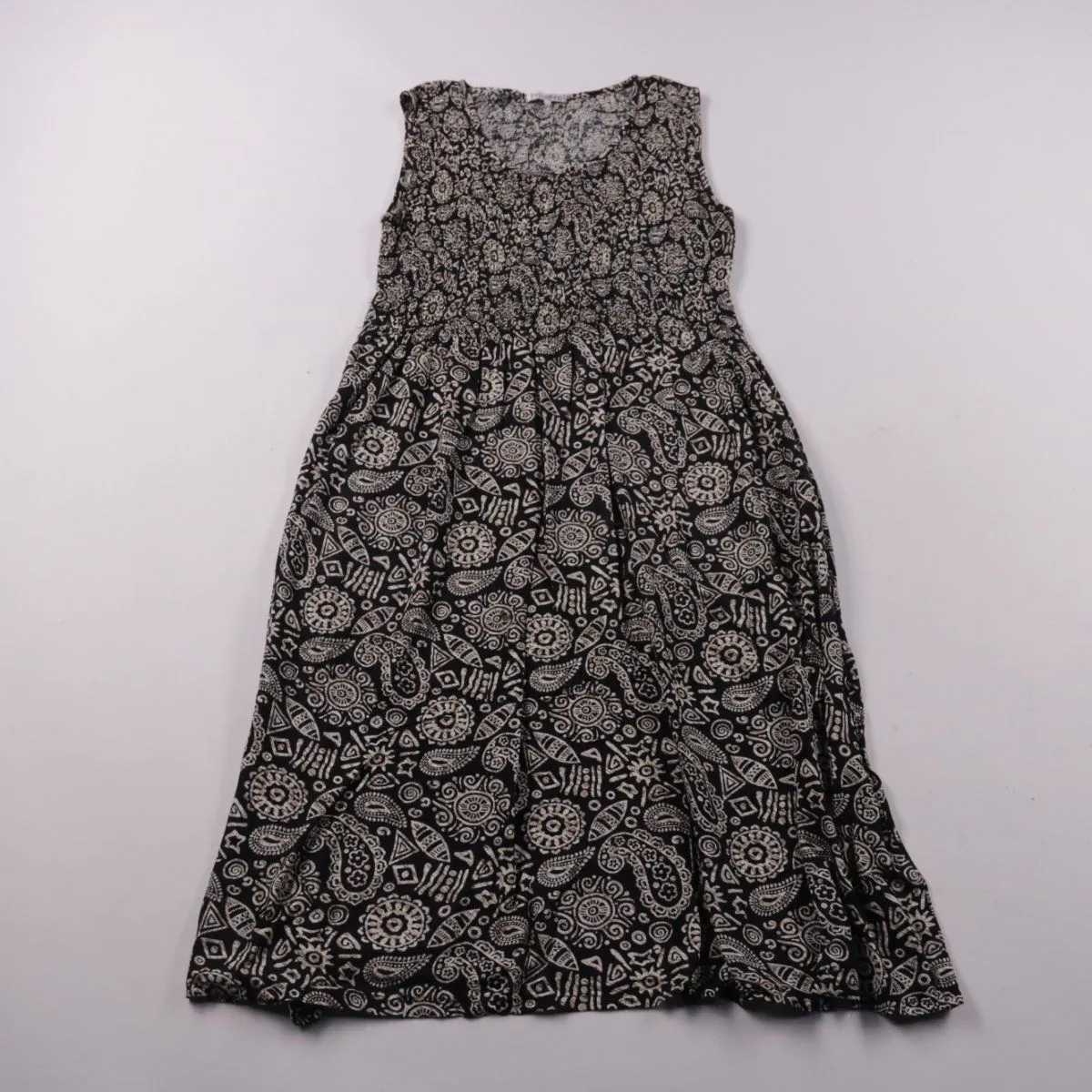 Сарафан Franken из 100% вискозы (rayon) с черно-белым этническим принтом и свободным кроем. Подойдёт для повседневной носки и отдыха в тёплую погоду. Лёгкая ткань хорошо драпируется и комфортна в жару.