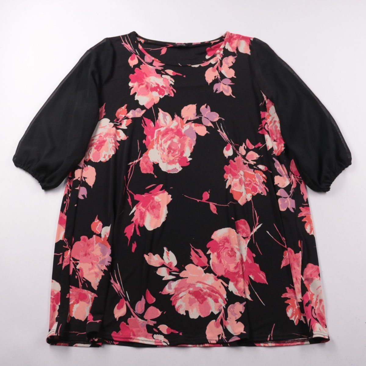 Повседневное платье Yours свободного A-силуэта с крупным цветочным принтом на чёрном фоне и короткими рукавами. Подойдёт для повседневных выходов и поездок, хорошо смотрится с кедами или балетками. Тянущаяся ткань комфортно садится и не стесняет движения.