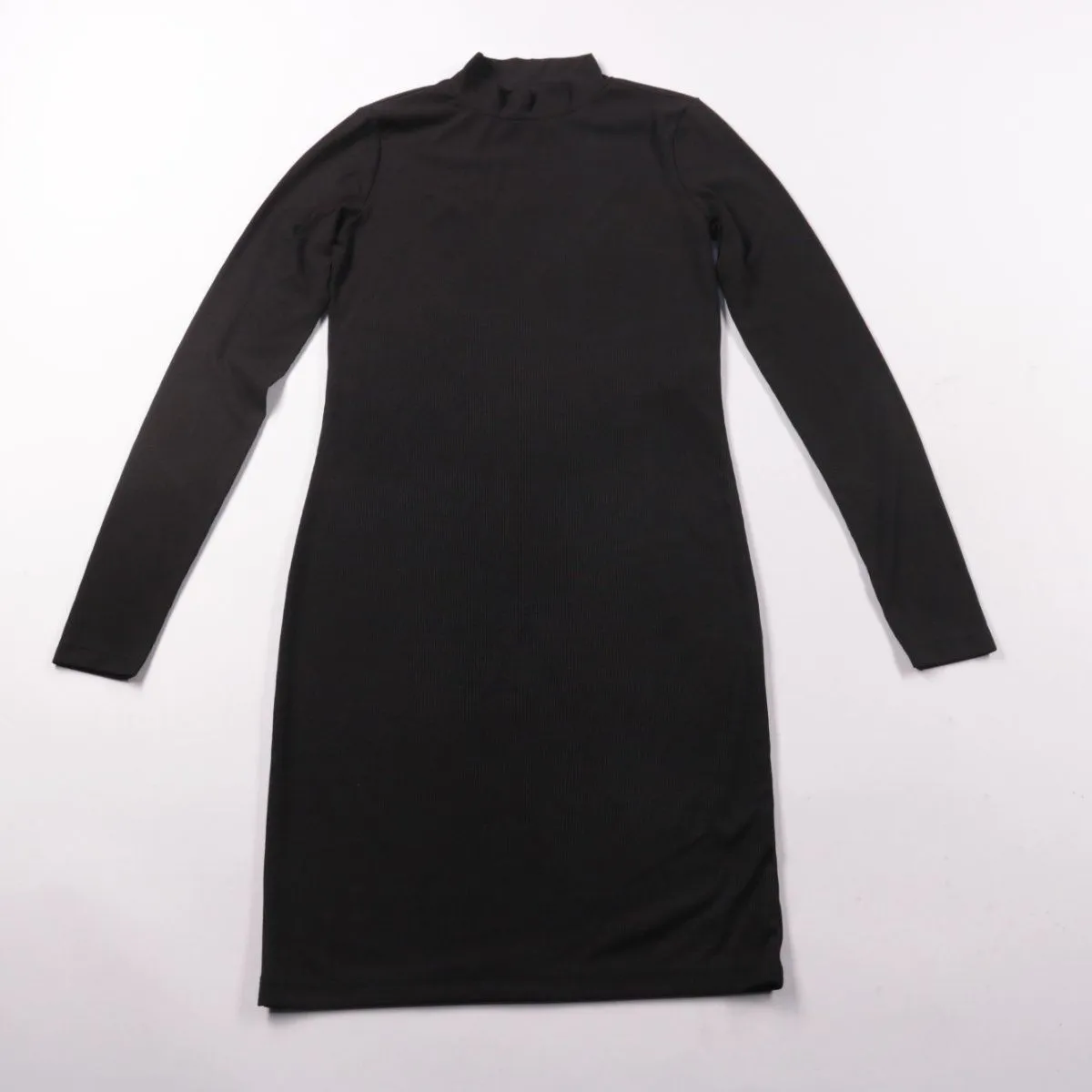 Платье Jacqueline de Yong чёрного цвета, облегающего силуэта с длинным рукавом и воротником-стойкой. Подойдёт для повседневных образов и офиса в прохладную погоду. Трикотажная фактура хорошо тянется и комфортно садится по фигуре.