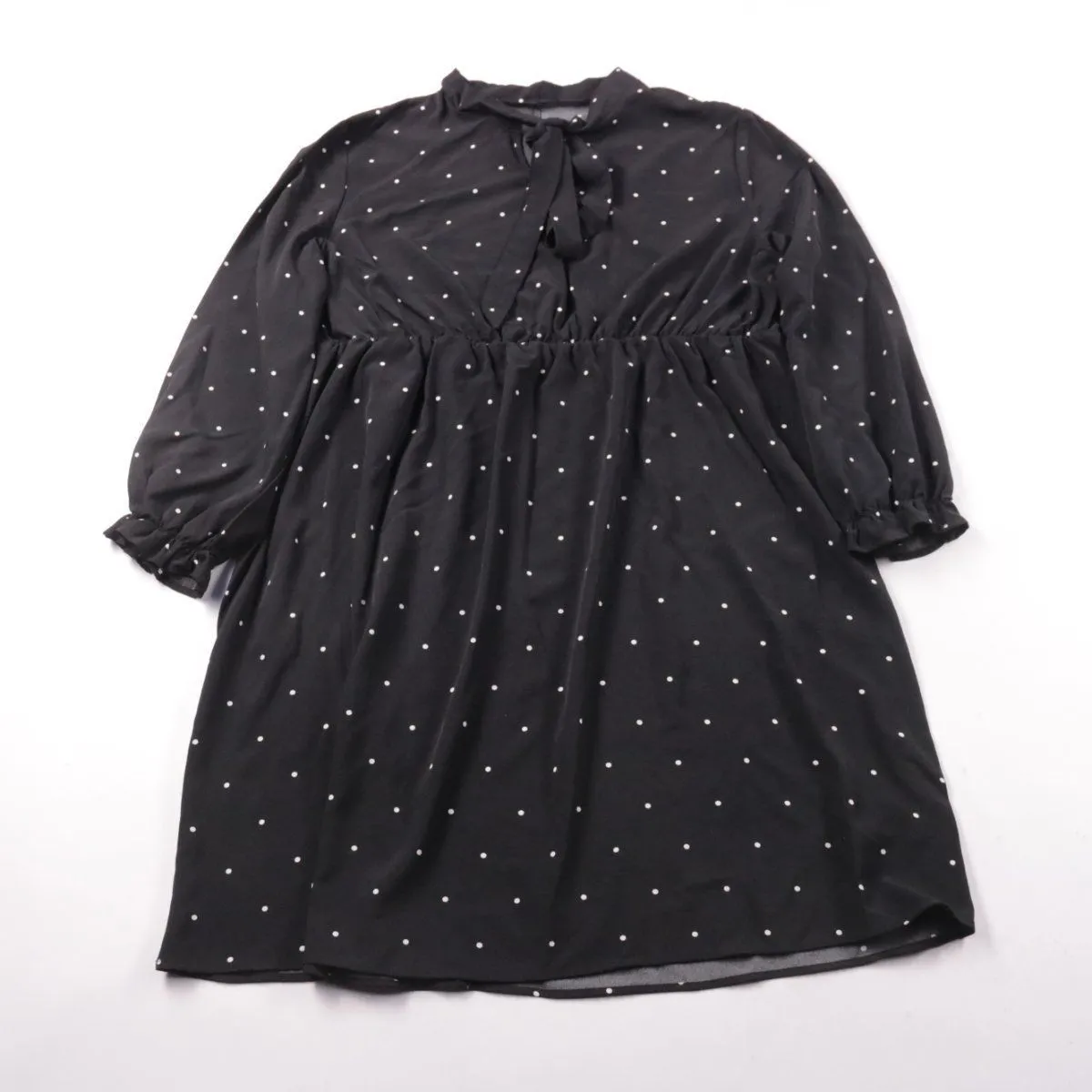 Повседневное платье SHEIN Curve чёрного цвета в мелкий белый горошек, с завязками у горловины и длинными рукавами на резинке. Подойдёт для офиса и прогулок в прохладную погоду, хорошо сочетается с ботинками и лоферами. Лёгкий полиэстер быстро сохнет и почти не мнётся.