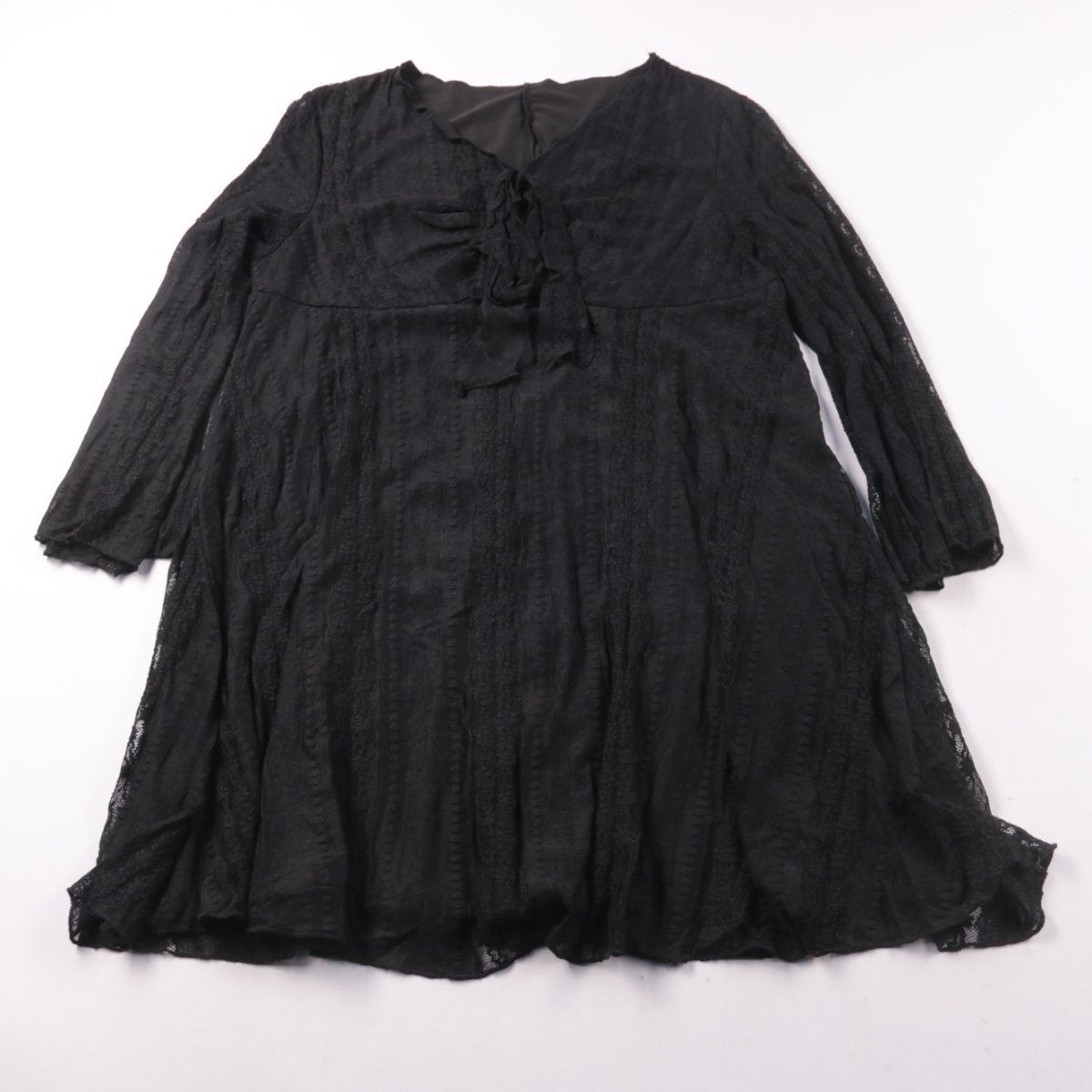Повседневное платье SHEIN Curve чёрного цвета с длинными рукавами и завязками/рюшами у горловины. Подойдёт для повседневных выходов и спокойных образов в прохладную погоду. Лёгкая ткань и свободный крой дают комфорт в движении.