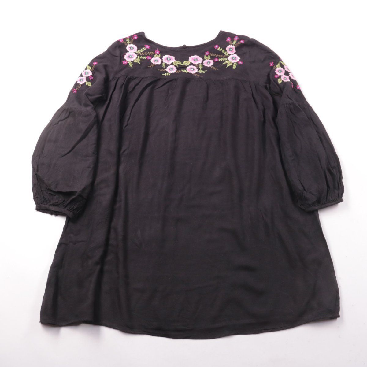 Повседневное платье свободного кроя из вискозы, с цветочной вышивкой по линии горловины и на плечах. Подойдёт для повседневной носки и прогулок в тёплую погоду или в демисезон с кардиганом. Вискоза хорошо дышит и комфортна в течение дня.