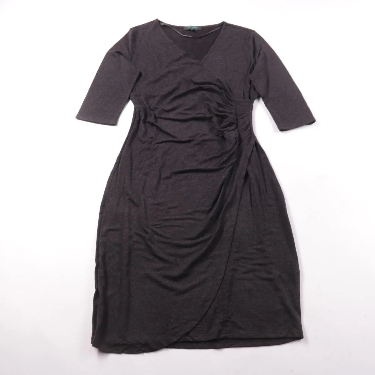 Повседневное платье Fever London City чёрного цвета с V-образным вырезом и рукавом 3/4. Модель с драпировкой по боку подойдёт для офиса и на каждый день. Трикотажная ткань тянется и комфортно садится по фигуре.