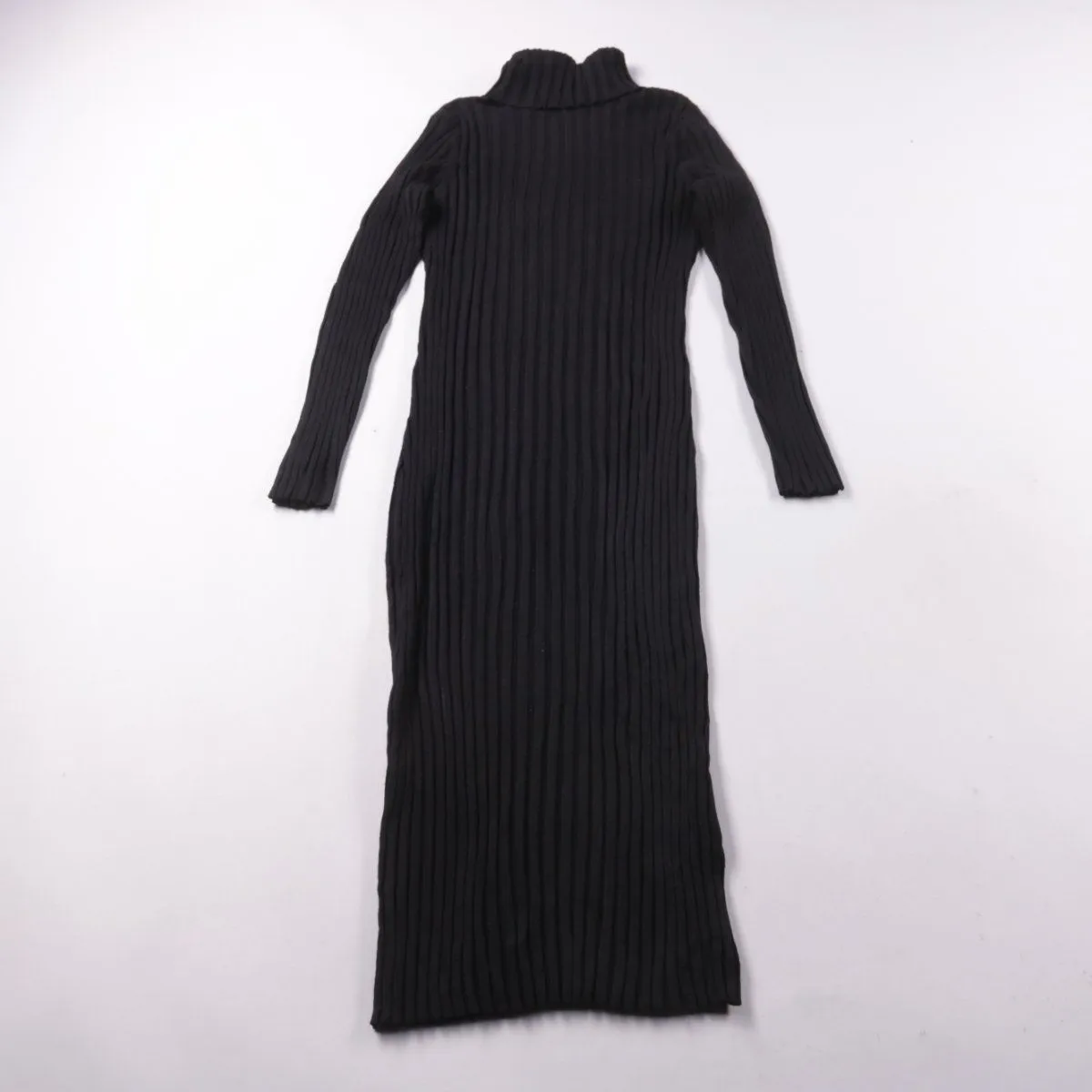 Повседневное чёрное трикотажное платье в рубчик с высоким воротником и длинными рукавами. Подойдёт для прохладной погоды, можно носить как самостоятельный образ или в многослойных комплектах. Тянущийся материал удобно садится по фигуре и не сковывает движения.