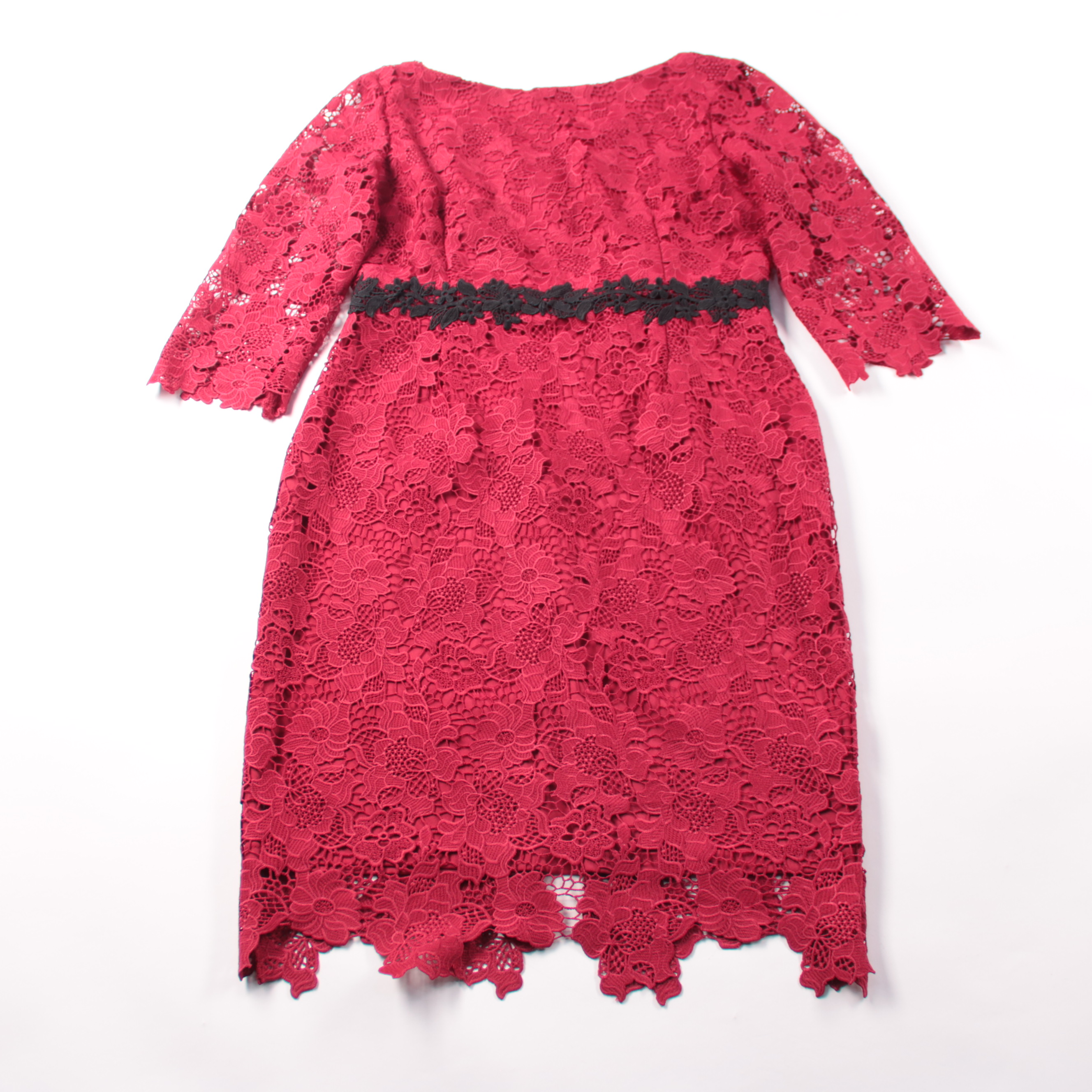 Кружевное платье Paper Dolls насыщенного красного цвета с чёрной декоративной вставкой на талии и рукавами 3/4. Подойдёт для вечера, праздника или торжества, хорошо смотрится с лаконичными туфлями и клатчем. Плотная подкладка делает модель комфортной и...