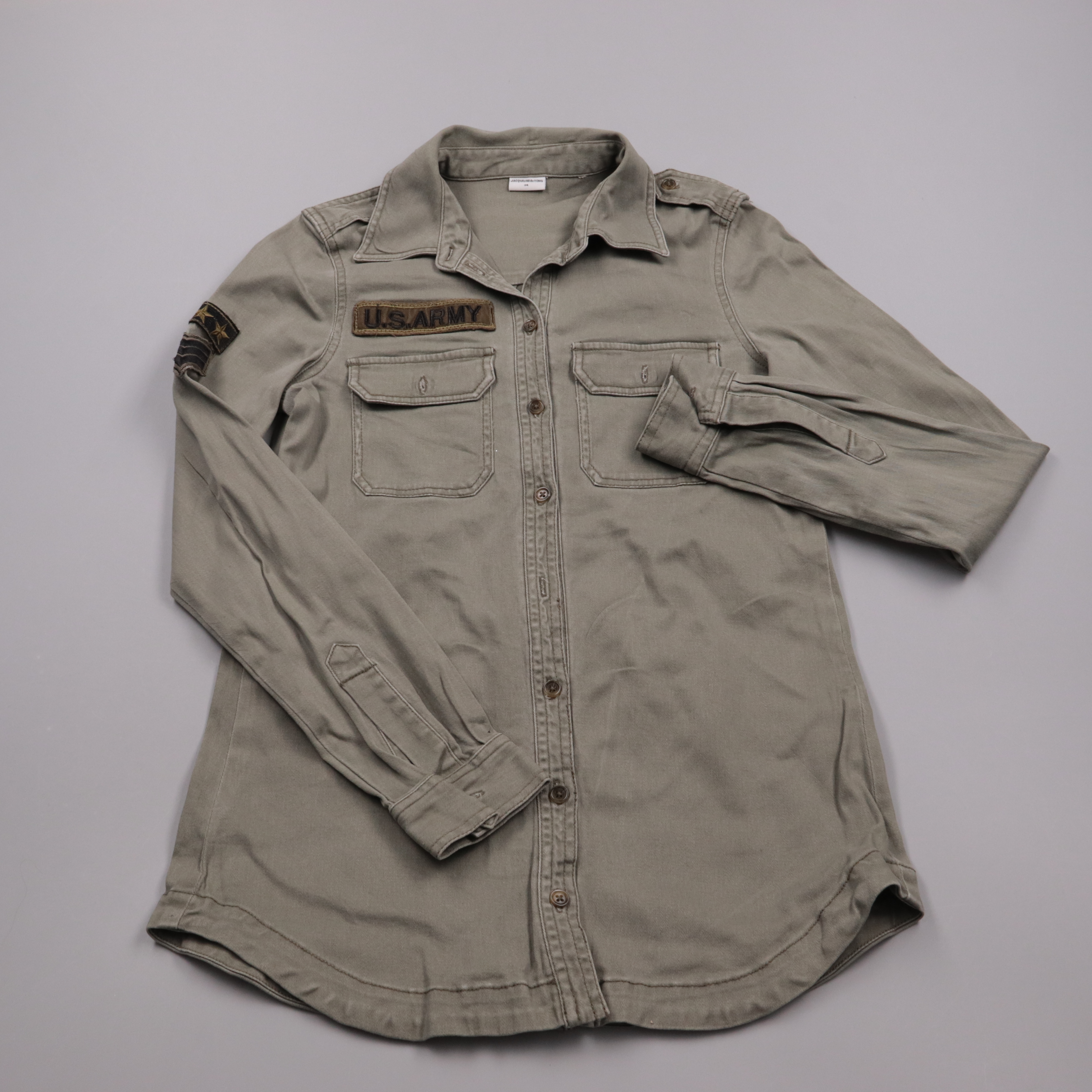 Женская рубашка Jacqueline de Yong в стиле милитари, цвет хаки, с нашивками и нагрудными карманами. Подойдёт для повседневных образов и многослойных сочетаний с джинсами или леггинсами в демисезон. Плотный хлопковый материал со стрейчем комфортно садит...