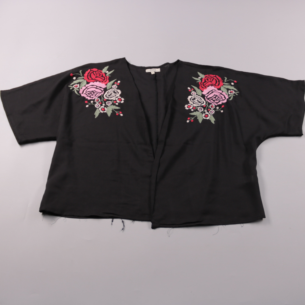 Женская блузка Papaya Weekend из 100% полиэстера, чёрного цвета с вышивкой роз на плечах. Подойдёт для повседневных образов и выходов — хорошо смотрится поверх топа или платья. Материал лёгкий и почти не мнётся, удобно брать с собой.