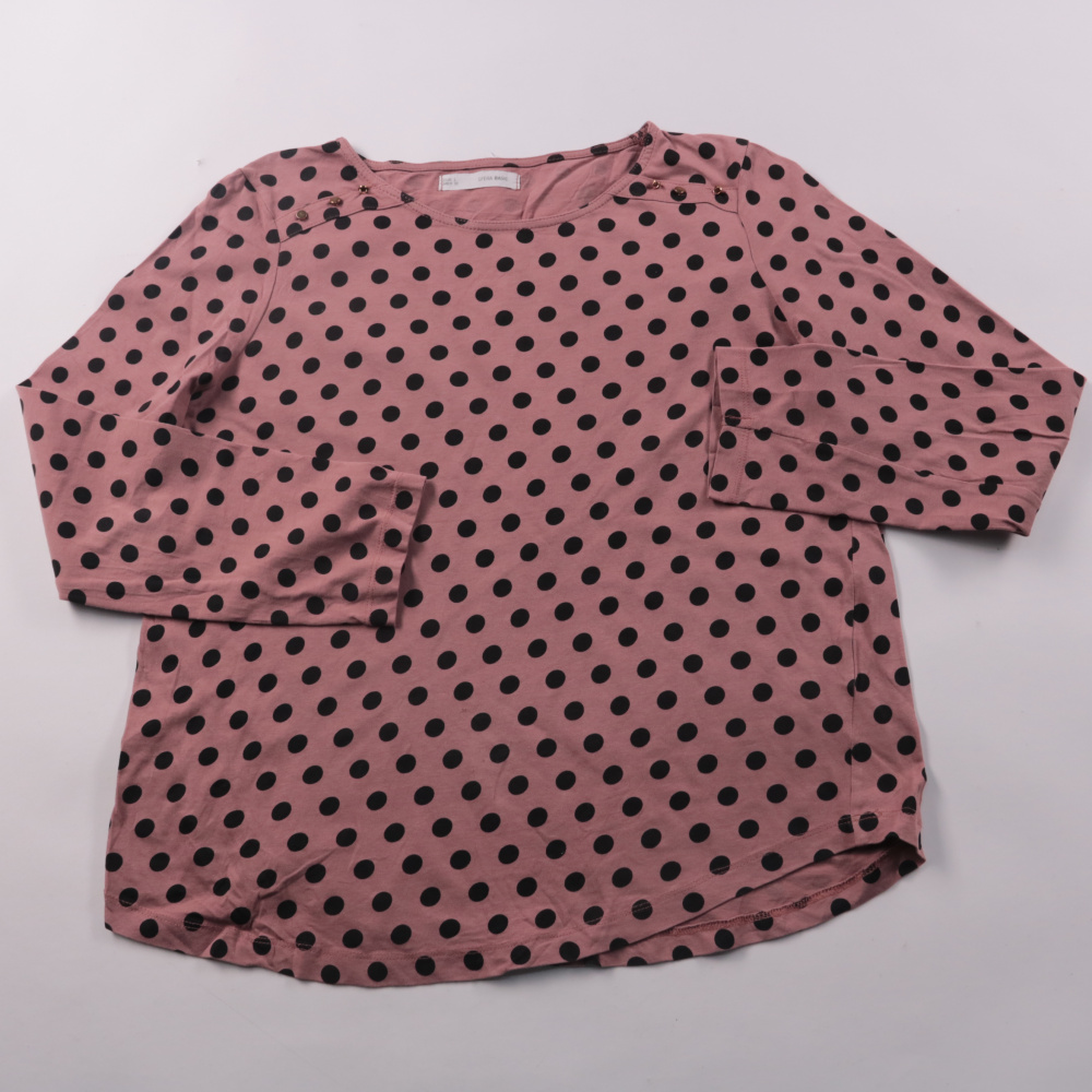 Блузка Sfera Basic пыльно-розового цвета в чёрный горох, с длинным рукавом и декоративными пуговицами у плеч. Подойдёт для повседневных образов, офиса или учёбы — легко сочетается с джинсами и юбками. Мягкий трикотаж комфортно сидит и не сковывает движ...
