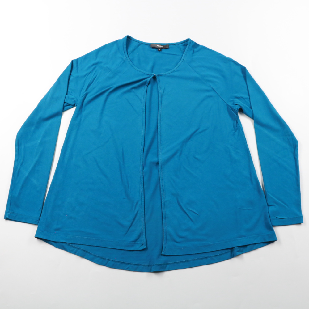 Женская блузка Bonita бирюзового цвета с длинным рукавом и свободным силуэтом. Подойдёт для офиса и повседневных образов, можно носить как лёгкий кардиган поверх топа. Мягкая вискоза с добавлением эластана приятно тянется и не сковывает движения.