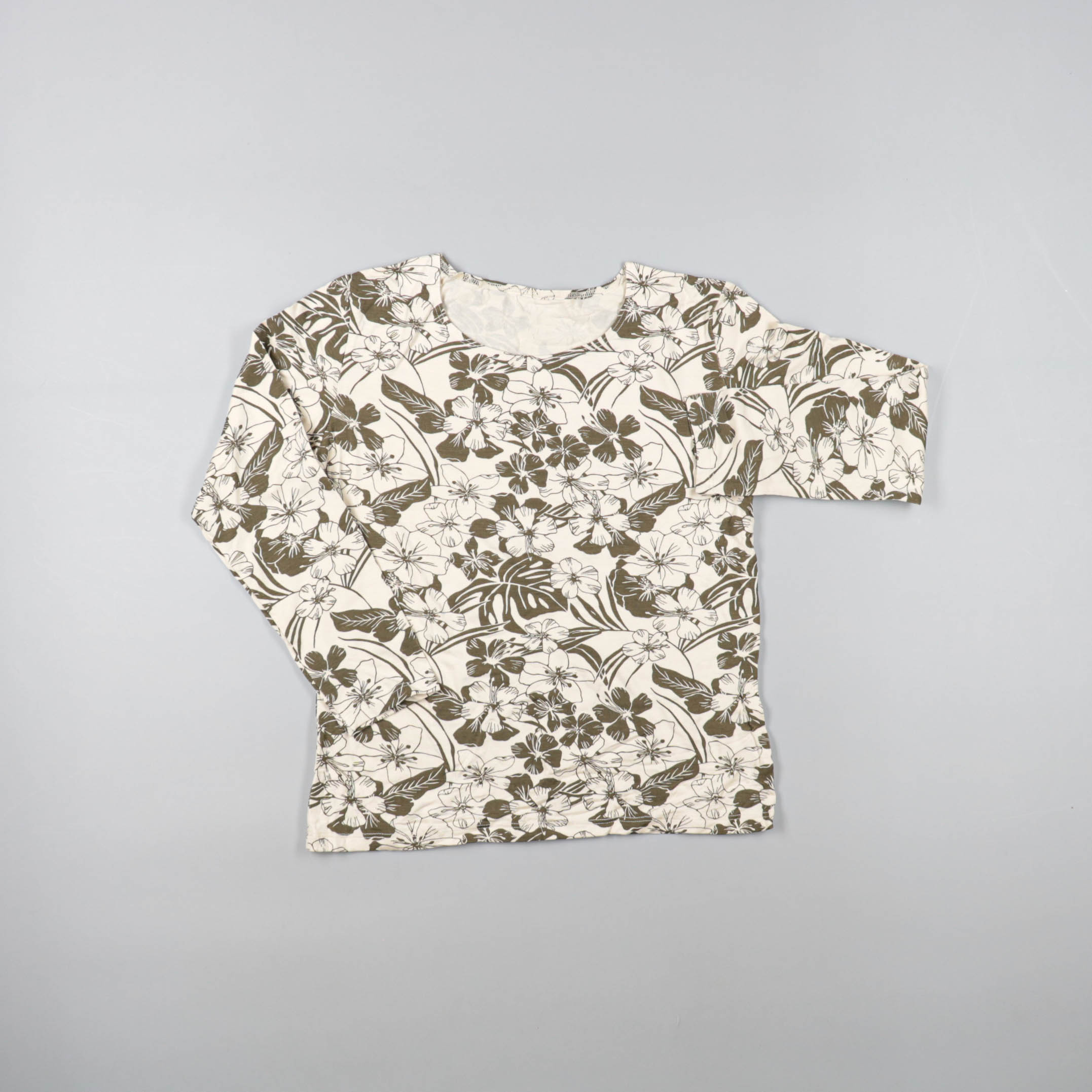 Женская блузка с цветочным принтом в бежево-коричневой гамме, с длинным рукавом и округлым вырезом. Подойдёт для повседневных образов и офиса в сочетании с однотонными брюками или юбкой. Практична тем, что принт хорошо скрывает мелкие следы носки и лег...