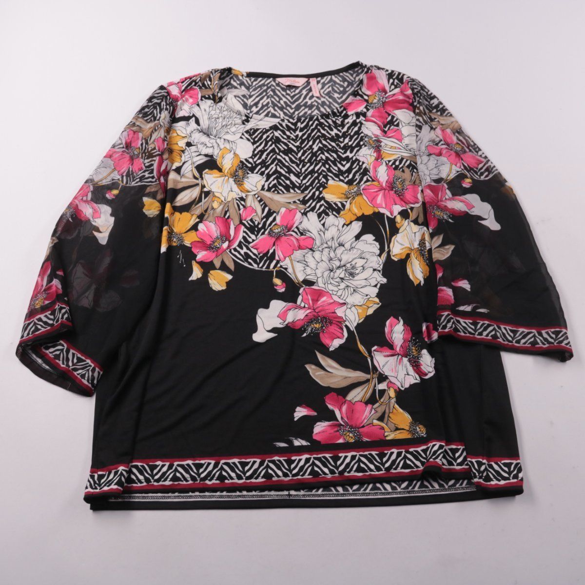 Женская блузка Millera с цветочным принтом и вставками под «зебру», свободный крой. Подойдёт для повседневных образов и офиса с однотонным низом. Лёгкая ткань почти не мнётся и быстро сохнет.