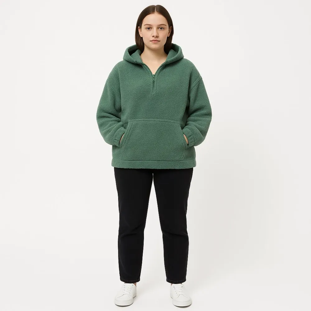 Флисовая толстовка Papaya зелёного цвета с капюшоном и короткой молнией у горловины. Подойдёт для прогулок и повседневной носки в прохладную погоду, удобно сочетать с джинсами или спортивными брюками. Мягкий 100% полиэстер быстро сохнет и прост в уходе.