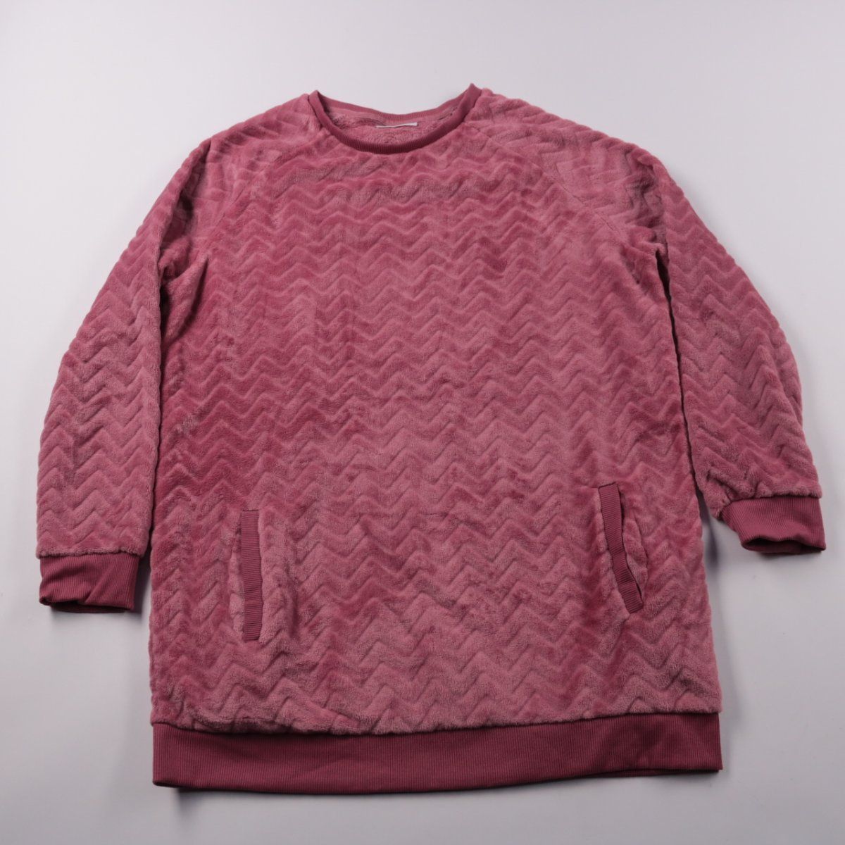 Свитшот Janina из мягкого фактурного полиэстера с узором «зигзаг» и карманами по бокам. Подойдёт для повседневной носки в прохладную погоду и дома. Материал быстро сохнет и простой в уходе.