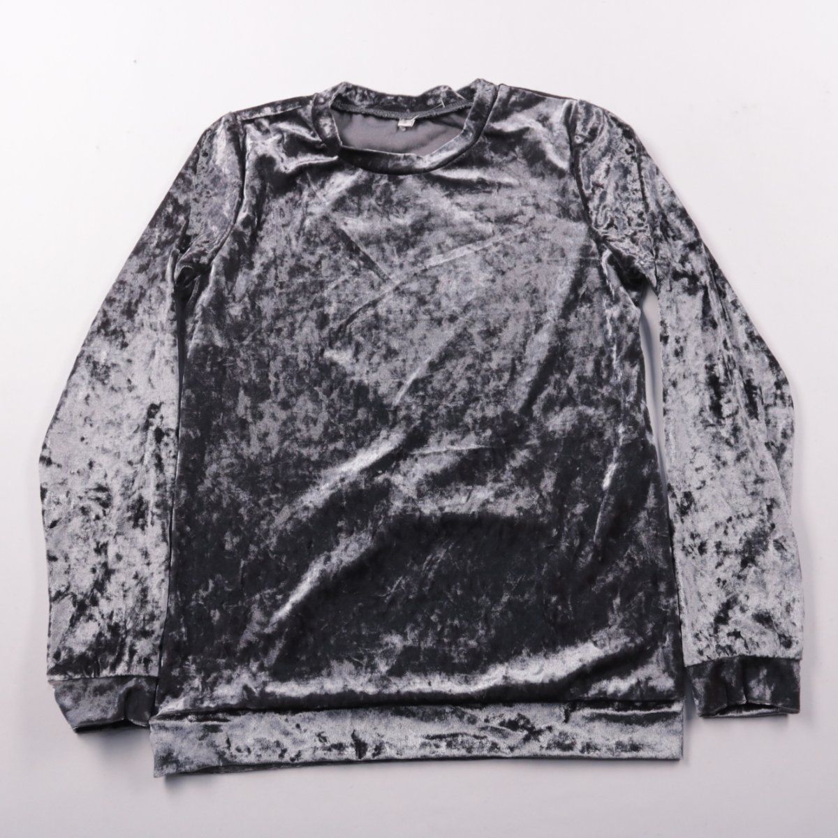 Свитшот из велюра с эффектом «мрамор» в серо-чёрных оттенках, без капюшона, с круглым вырезом. Подойдёт для повседневных образов в прохладную погоду и для многослойных комплектов. Мягкая фактура приятна к телу и хорошо смотрится даже в простых сочетаниях.