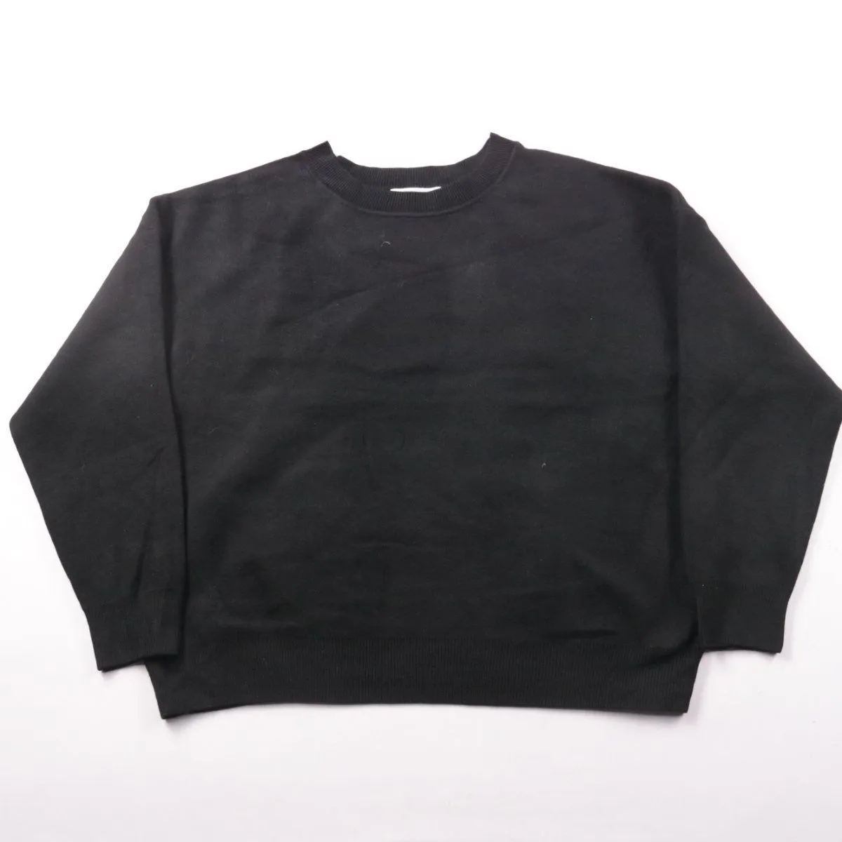 Свитшот Primark Cares чёрного цвета с круглым вырезом и эластичными манжетами/низом. Подойдёт для повседневных образов и комфортной носки в прохладную погоду. Практичное преимущество — базовый однотонный цвет легко сочетать с любой одеждой.