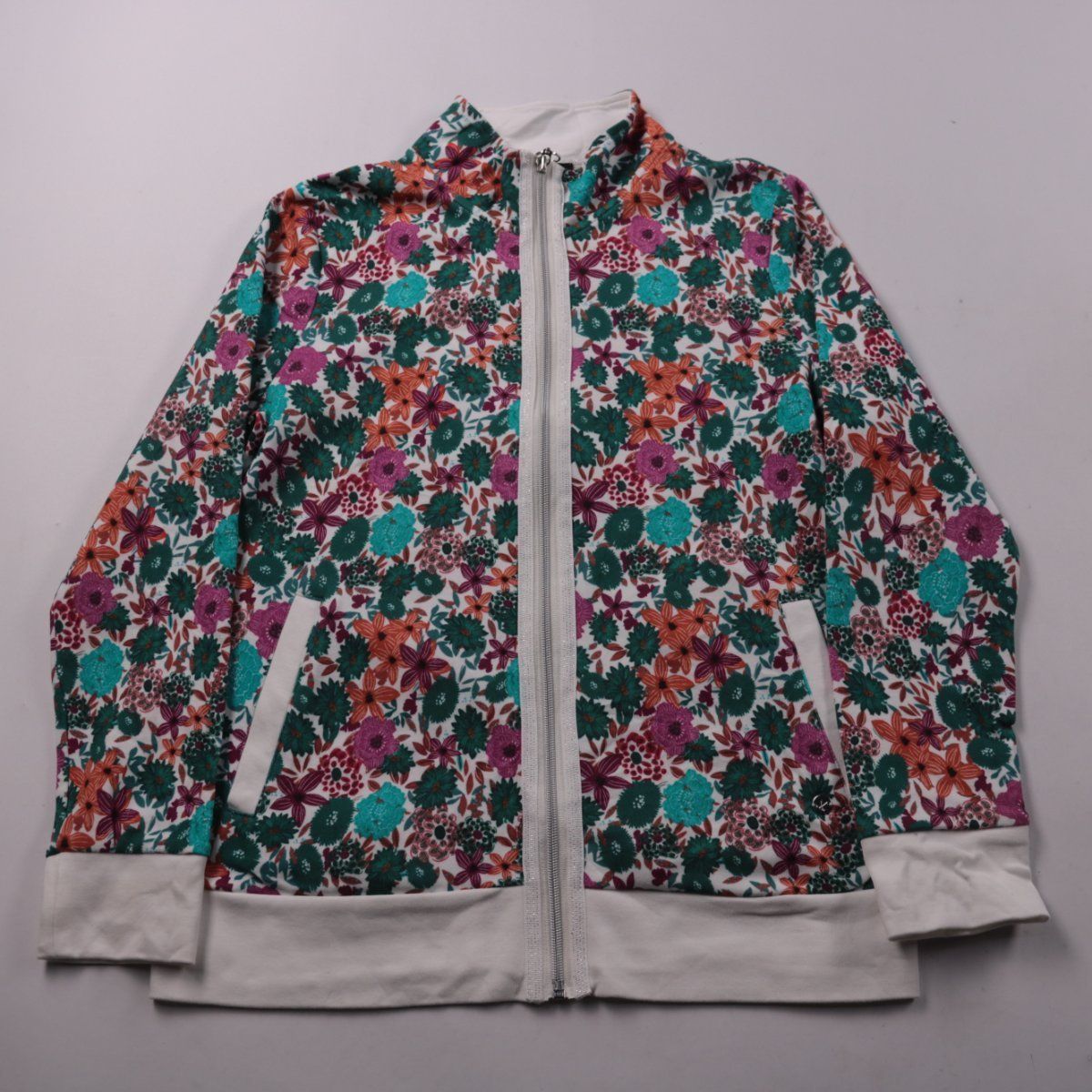 Толстовка Walbusch на молнии с цветочным принтом и воротником-стойкой. Подойдёт для повседневных образов и прогулок в прохладную погоду. Тянущийся хлопковый трикотаж комфортно садится по фигуре, есть карманы.