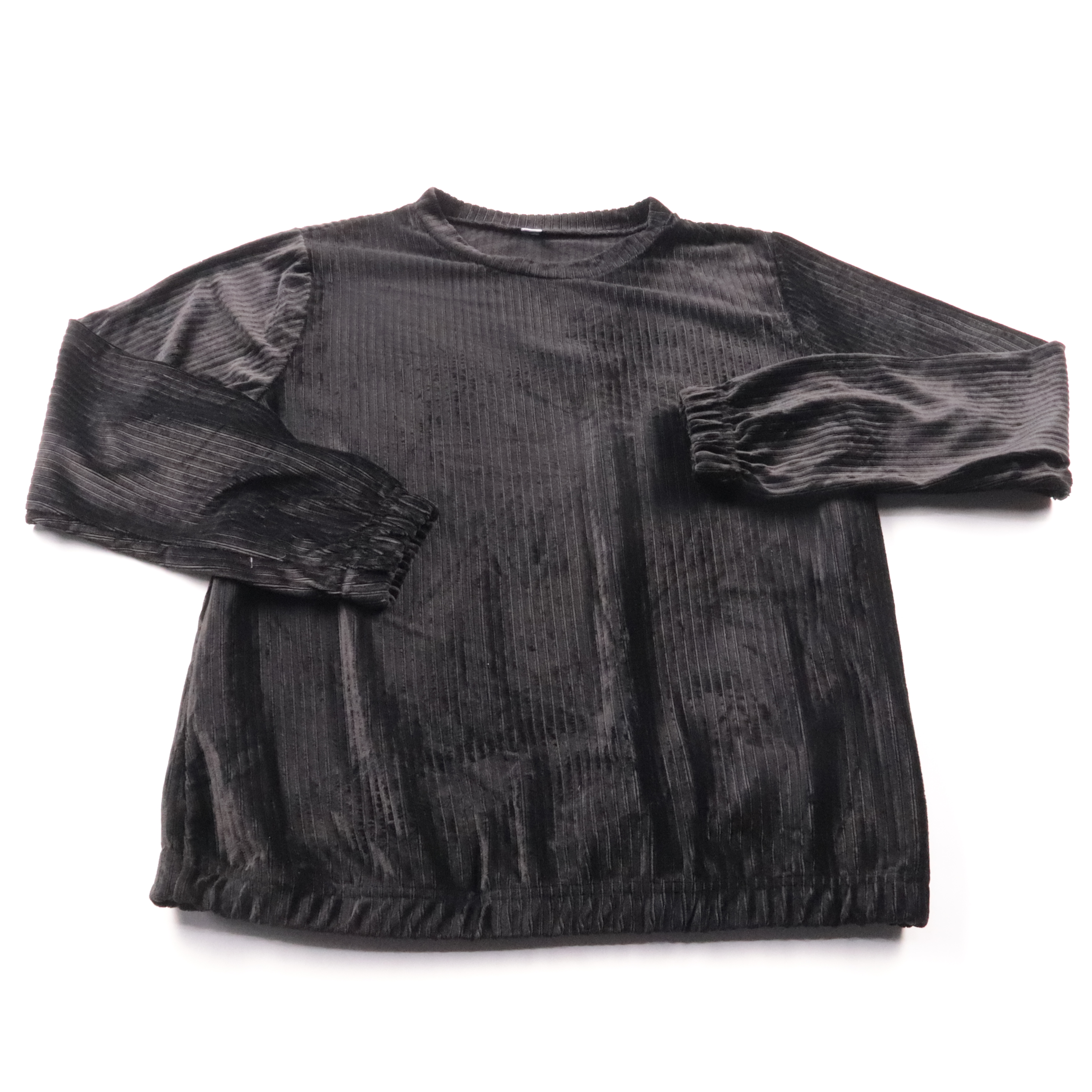 Чёрный лонгслив в рубчик с круглым вырезом и манжетами на рукавах. Подойдёт для повседневных образов и как базовый слой под жакет или куртку в прохладную погоду. Ткань мягкая и тянется, удобно садится по фигуре.