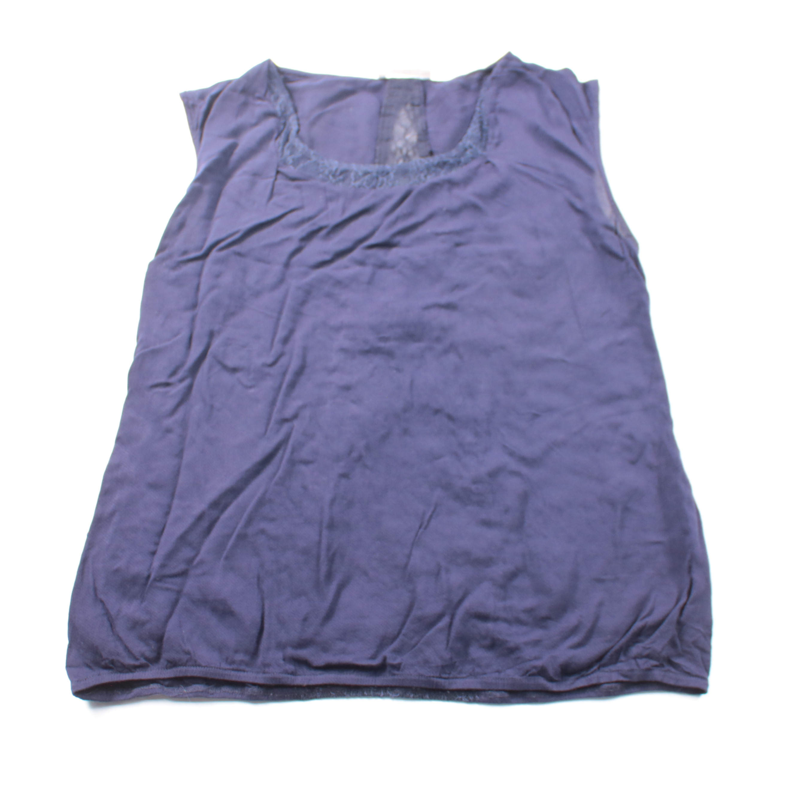 Женский топ Promod тёмно-синего цвета с кружевной отделкой по вырезу. Подойдёт для лета и тёплой погоды, удобно сочетать с джинсами или юбкой на каждый день. Лёгкий материал и свободный крой не сковывают движения.