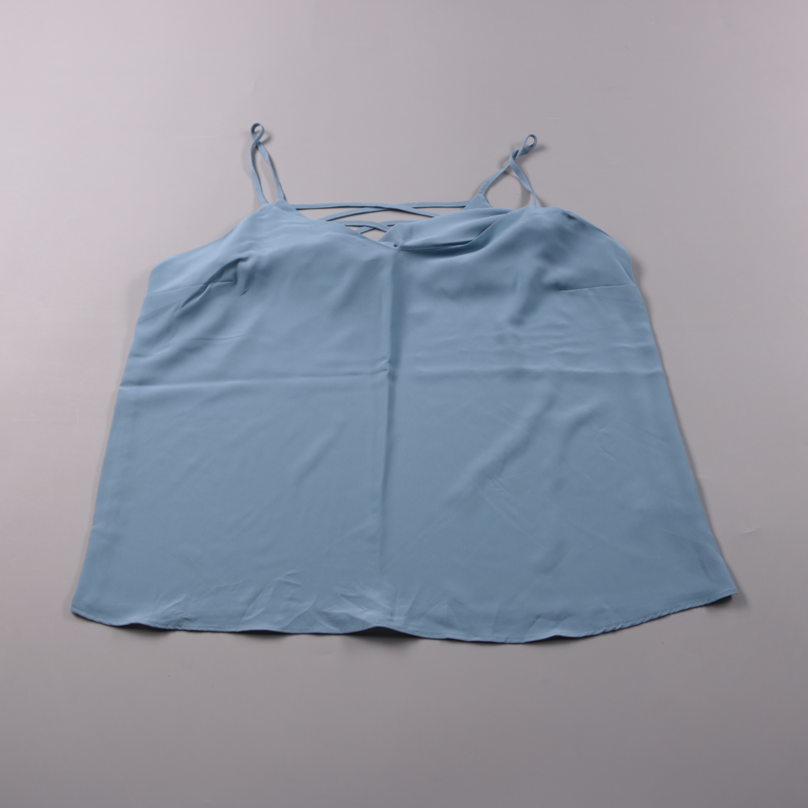 Женский топ New Look нежно-голубого цвета на тонких бретелях со шнуровкой/переплетением на спинке. Подойдёт для лета, отпуска и вечерних выходов, легко сочетается с джинсами, юбками и шортами. Ткань 100% полиэстер — быстро сохнет и почти не мнётся.