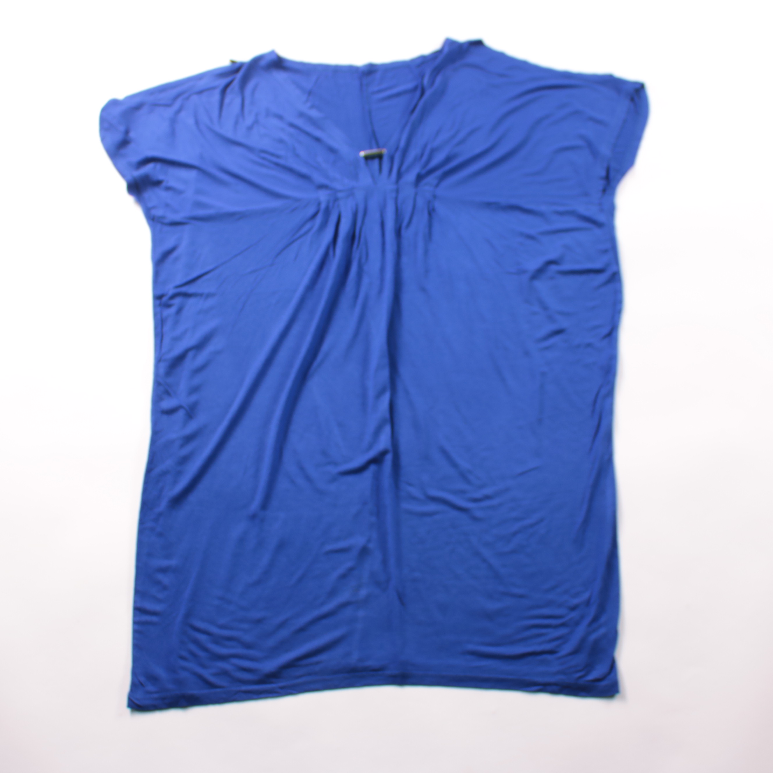 Футболка Dunnes Stores кобальтового синего цвета, свободного кроя с небольшим V-образным вырезом и мягкими складками спереди. Подойдёт на каждый день и для офиса в тёплое время, хорошо сочетается с джинсами или юбкой. Лёгкий материал комфортно драпируе...