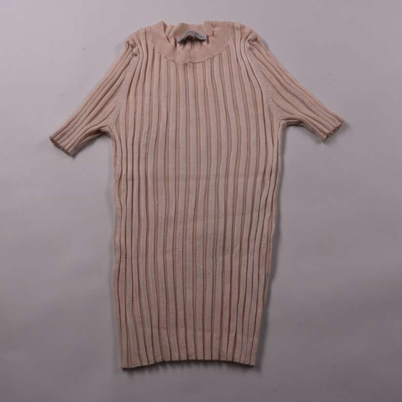 Трикотажный лонгслив Zara Knit в рубчик, бежевого цвета и с коротким рукавом. Подойдёт для повседневных образов и офиса в сочетании с джинсами, юбкой или жакетом. Эластичная вязка хорошо садится по фигуре и удобно носится под верхней одеждой.