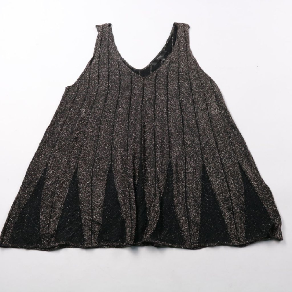 Топ Next свободного кроя с глубоким V-образным вырезом и широкой проймой. Мерцающая фактура и плиссировка делают его удачным для вечернего выхода или праздника. Лёгкий материал не мнётся и быстро сохнет, удобно брать с собой.