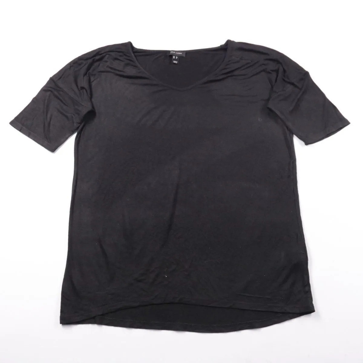 Футболка New Look чёрного цвета с V-образным вырезом и коротким рукавом. Подойдёт для повседневных образов и как базовый слой под жакет или кардиган. Ткань с эластаном слегка тянется и комфортно садится по фигуре.