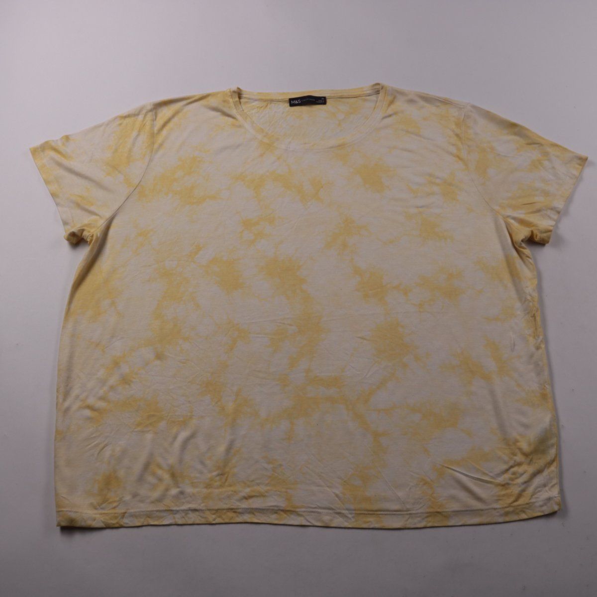 Женская футболка M&S Collection светлого оттенка Straw с эффектом tie-dye. Подойдёт для повседневных летних образов и отдыха, хорошо сочетается с джинсами и шортами. Практичный плюс — ткань из вискозы с полиэстером легко стирается и быстро сохнет.