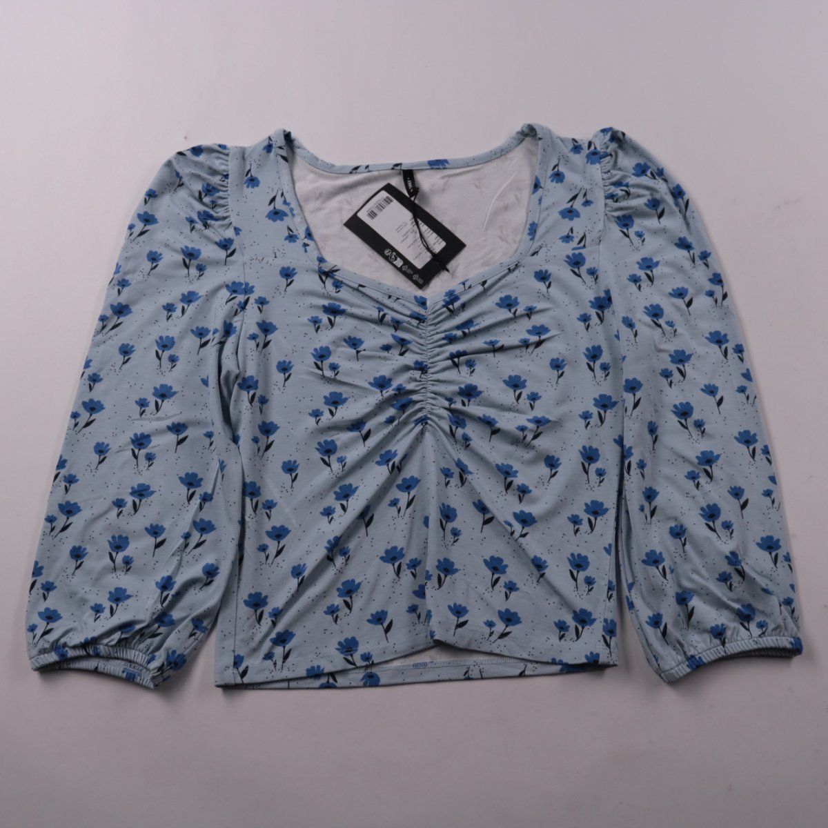 Топ Only с квадратным вырезом и сборкой по центру, с цветочным принтом на светло-голубом фоне. Подойдёт для повседневных образов весной и летом, хорошо сочетается с джинсами и юбками. Эластичная вискоза мягко тянется и комфортно садится по фигуре.