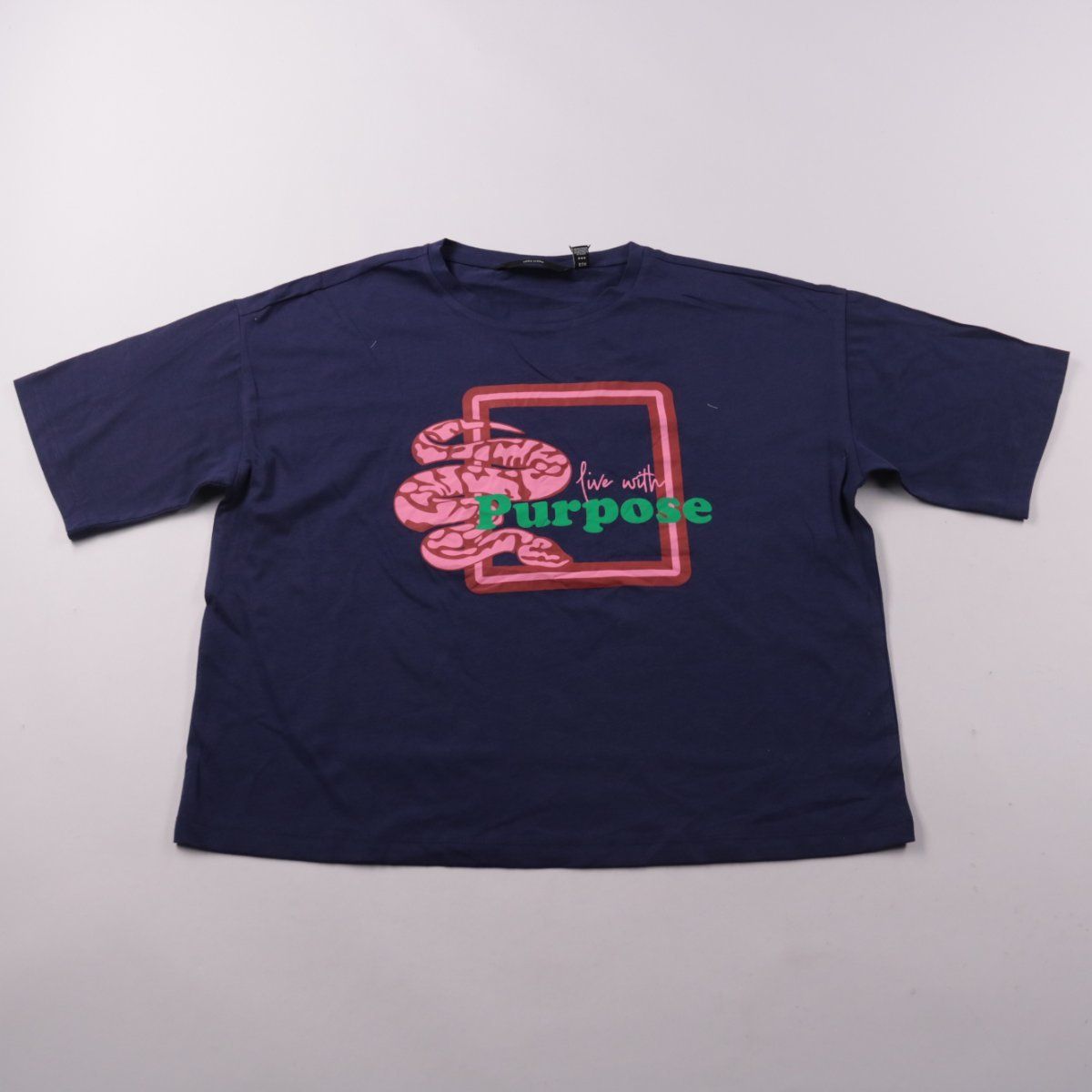 Женская футболка Vero Moda в тёмно-синем цвете с принтом и надписью «live with Purpose». Подойдёт для повседневных образов и прогулок, легко сочетается с джинсами и шортами. Мягкий хлопок комфортен в носке и хорошо пропускает воздух.