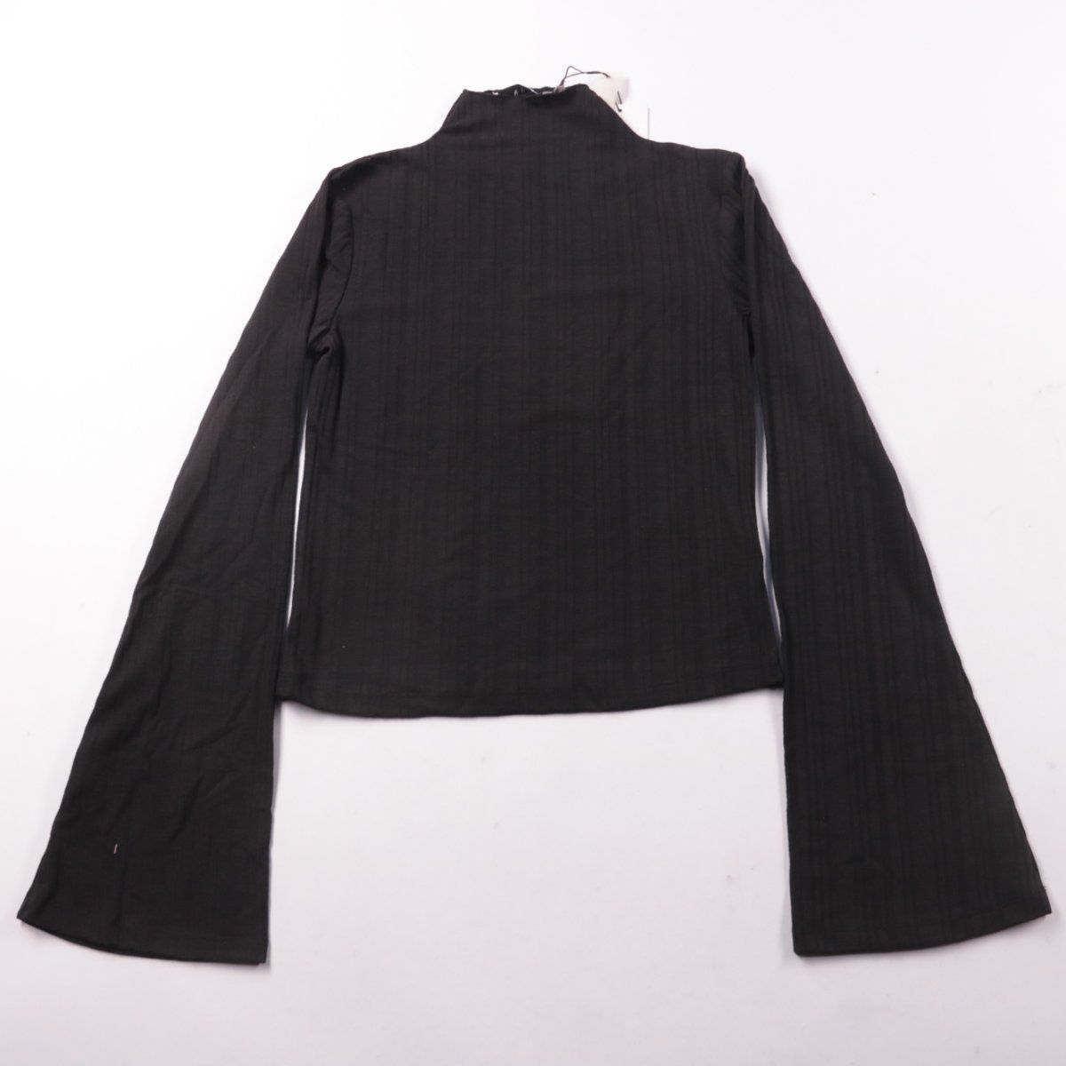 Чёрный лонгслив NA-KD с высоким воротом и длинными рукавами, ткань в тонкий рубчик. Подойдёт для повседневных и офисных образов в прохладную погоду как самостоятельный верх или под жакет. Материал тянется и комфортно садится по фигуре.