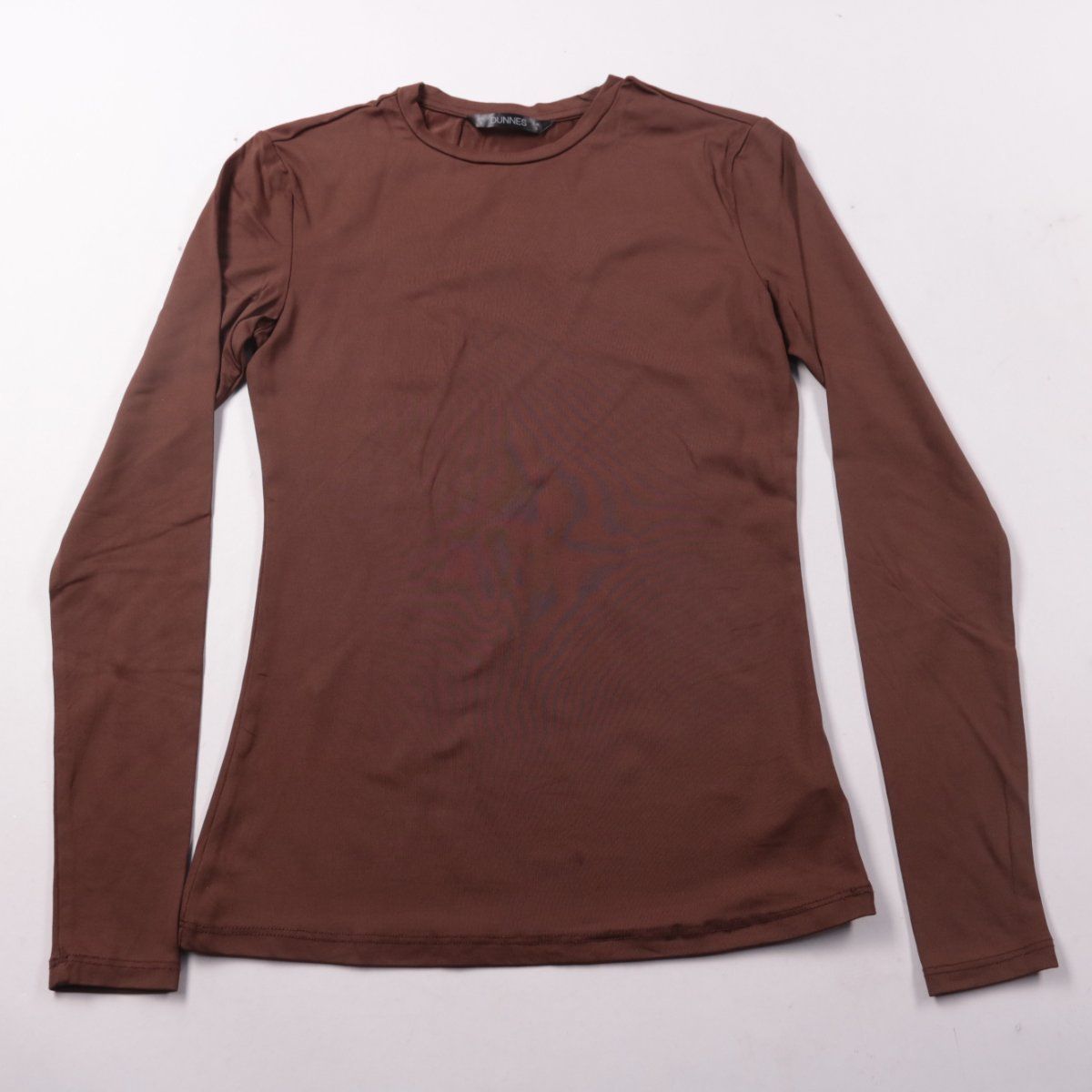 Лонгслив Dunnes коричневого цвета из тонкого эластичного трикотажа. Подойдёт для повседневной носки и как базовый слой в прохладную погоду. Материал хорошо тянется и удобно садится по фигуре.