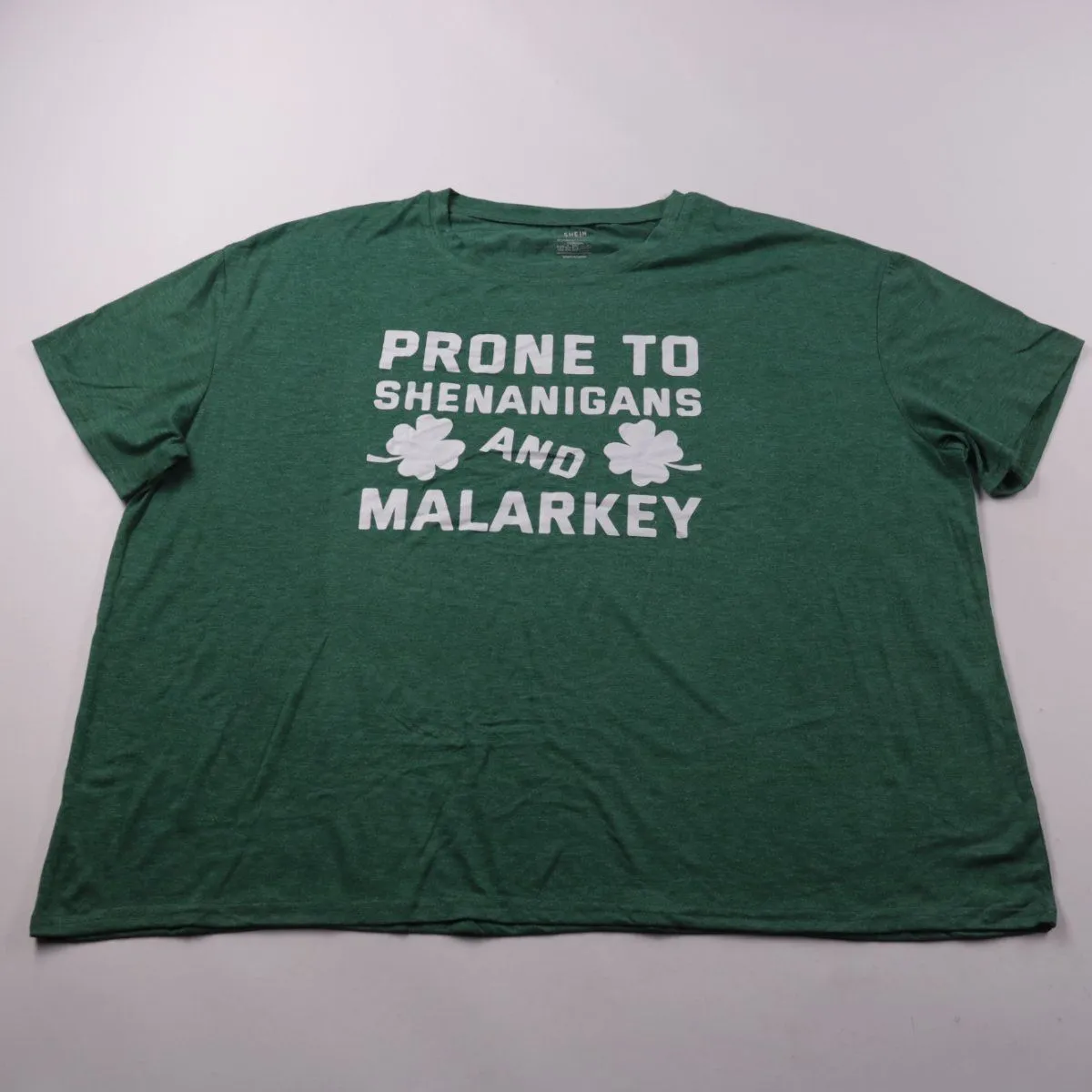Женская футболка SHEIN Curve зелёного цвета с крупным белым принтом спереди. Подойдёт для повседневных образов и отдыха в тёплую погоду. Ткань с добавлением эластана немного тянется и комфортно садится по фигуре.