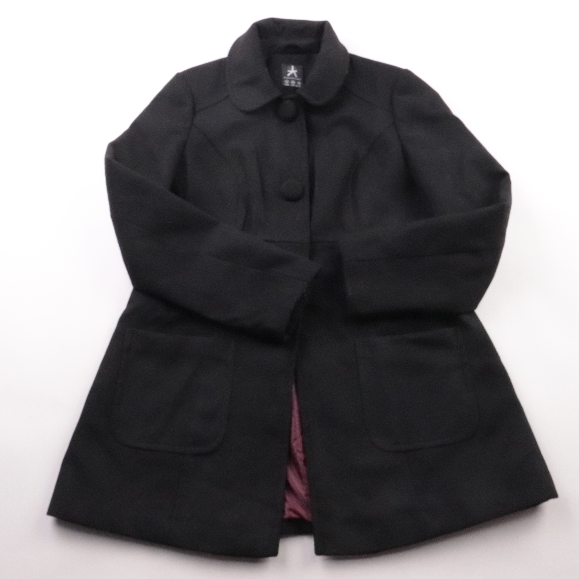 Женское пальто Atmosphere чёрного цвета с крупными пуговицами и накладными карманами. Подойдёт для повседневных образов в прохладную погоду и легко сочетается с джинсами и платьями. Практичная плотная ткань и подкладка делают его удобным для носки.