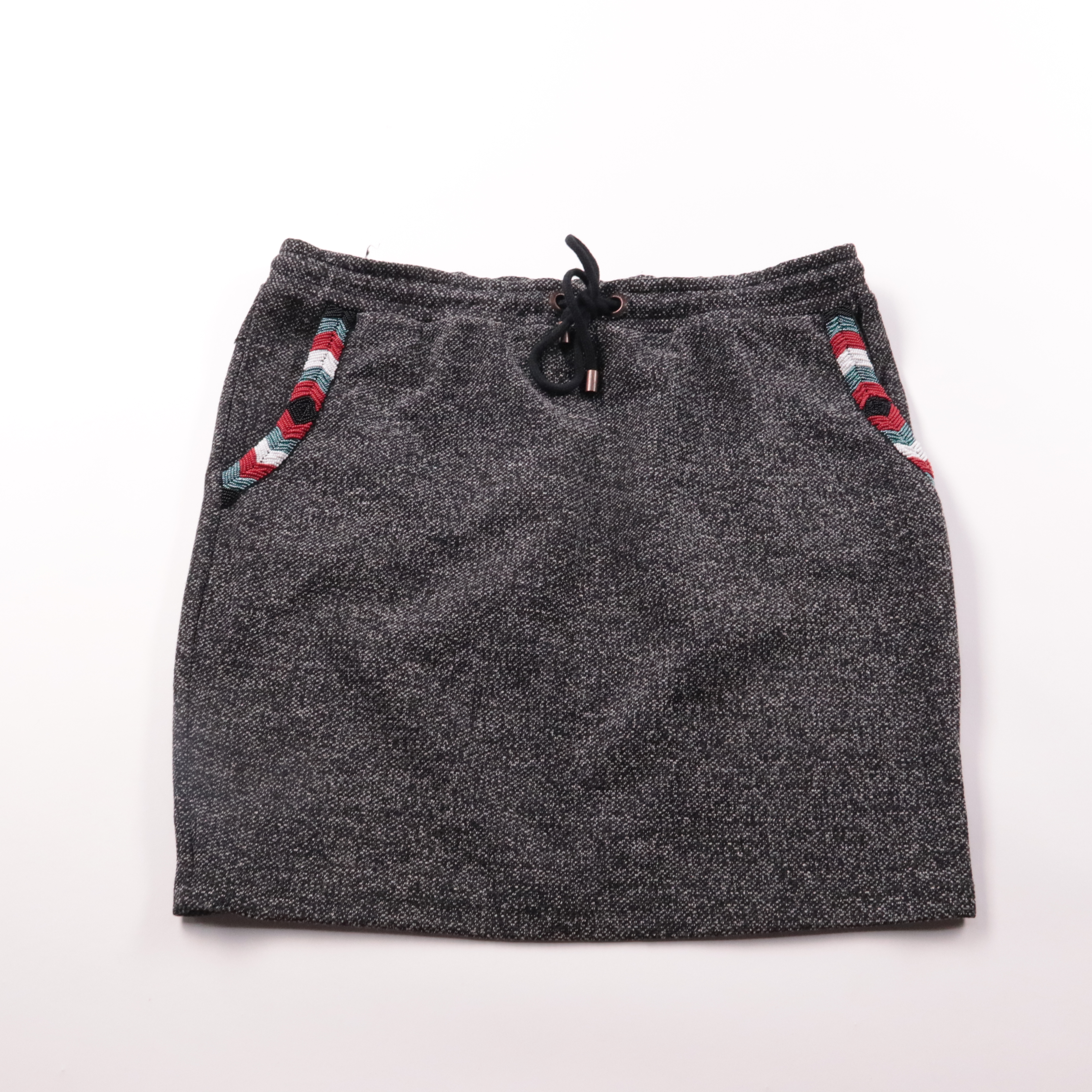Юбка Sissy-Boy из плотного меланжевого трикотажа тёмно-серого цвета, с кулиской на талии и карманами с цветной отделкой. Подойдёт для повседневных образов в городе и на прогулки в прохладную погоду. Практичный плюс — удобная посадка на шнурке и функцио...