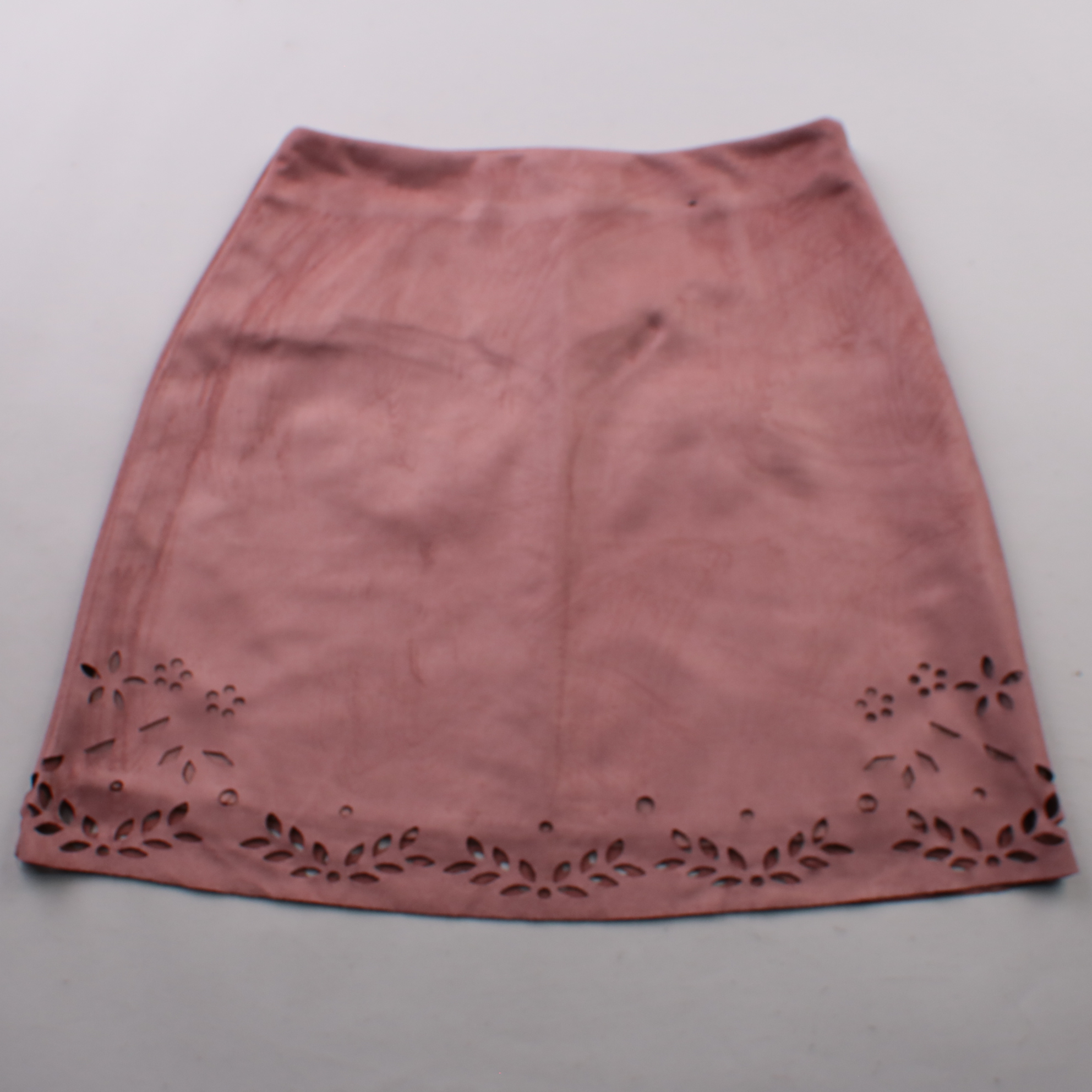 Юбка Primark пудрово-розового цвета с фигурной перфорацией по низу. Подойдёт для повседневных образов и на выход в тёплую погоду, хорошо сочетается с базовыми топами и блузами. Есть подкладка, поэтому не просвечивает и комфортно носится.